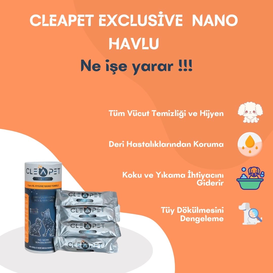 Cleapet Exclusive Seri 4’lü Mega Nano Havlu, evcil dostlarınızın hijyen ve bakım ihtiyaçlarını karşılamak için özel olarak tasarlanmıştır.
