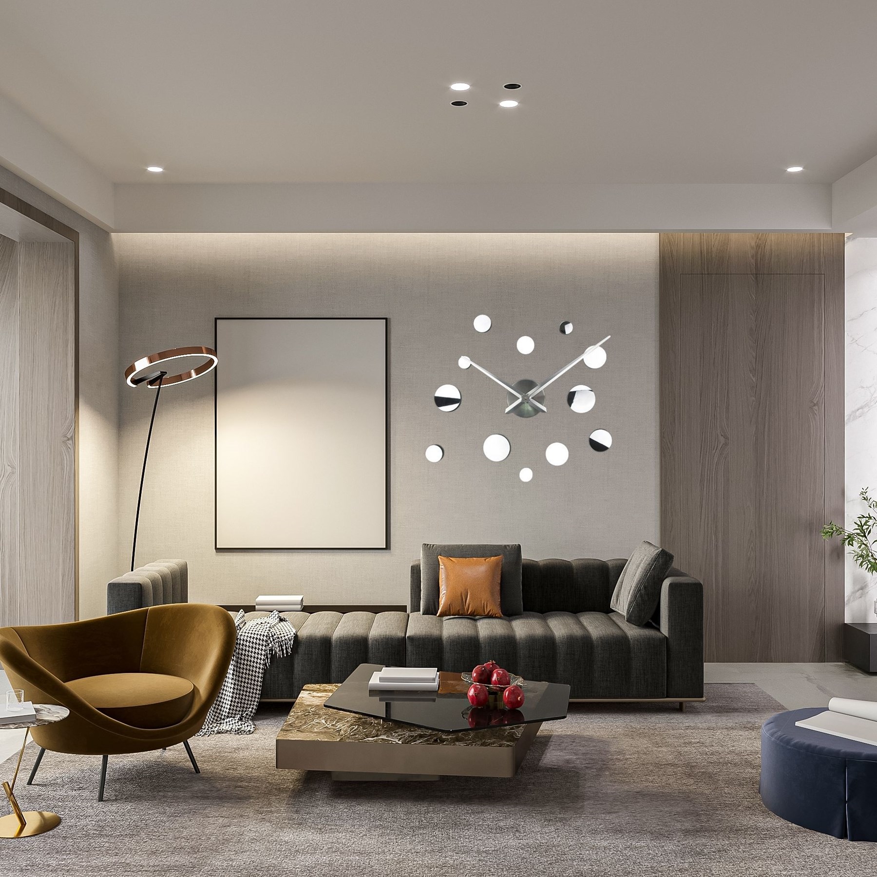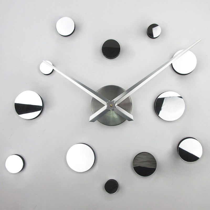 Rakam yerine kullanılan farklı boyutlardaki yuvarlak aynalı indeksler, saatin sade ve çağdaş bir tasarıma sahip olmasını sağlar. Parçalar duvara tek tek yerleştirildiği için saatin çapını duvarınıza ve dekorunuza uygun şekilde ayarlayabilirsiniz.