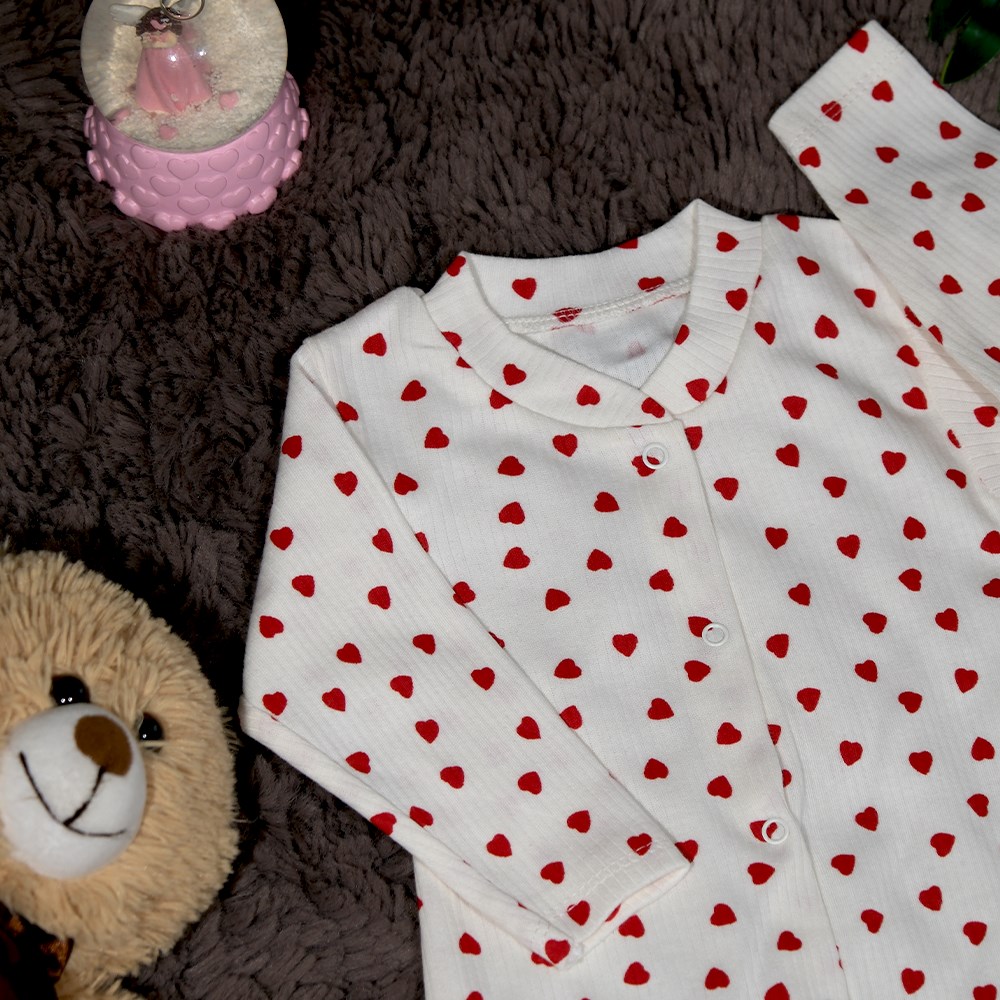 Sıcak tutma: Kalp Desenli Bebek Tulum, bebeğin vücut ısısını koruyarak onu soğuktan korur.
