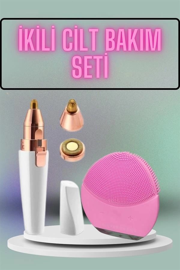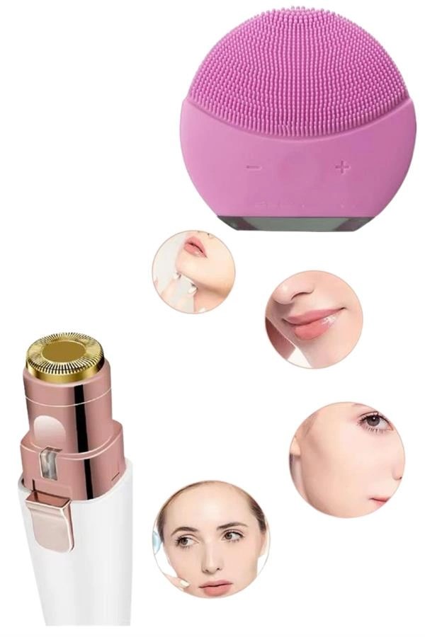 Kaş Bıyık Ve Yüz Epilasyon Aleti Ve Titreşimli Yüz Temizleme Masaj Aleti İkili Set