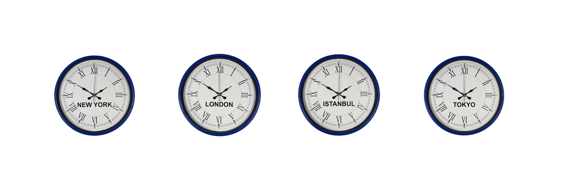 New York, London, Istanbul ve Tokyo saatlerini aynı anda takip etmenizi sağlayan bu özel set; özellikle oteller, resepsiyon alanları, ofisler ve uluslararası çalışan işletmeler için profesyonel ve dekoratif bir çözüm sunar.