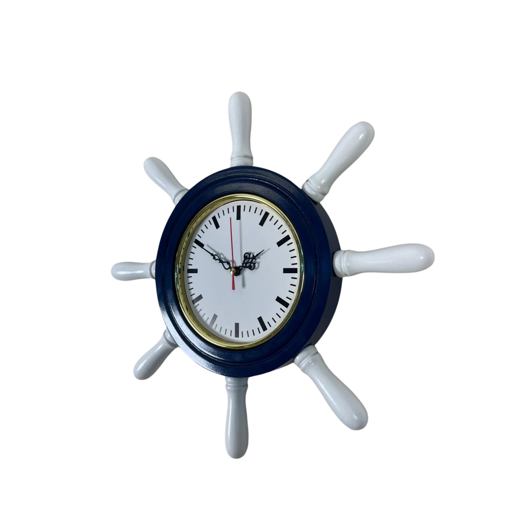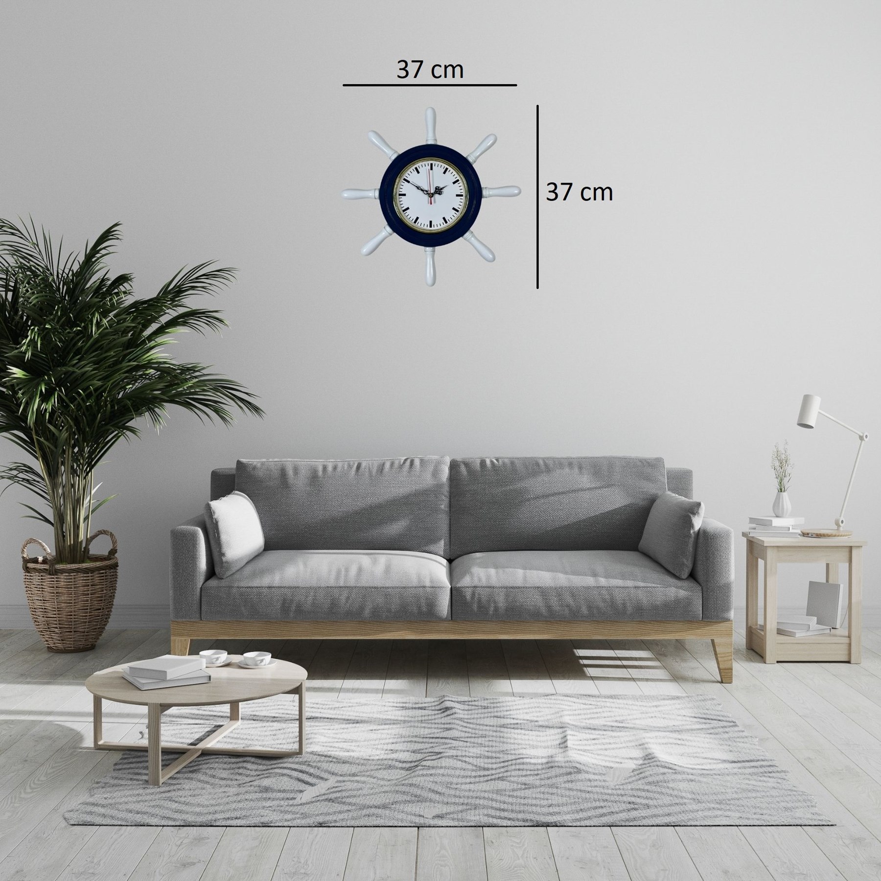 Denizcilik temalı dekorasyonlardan ilham alınarak tasarlanan 37 cm Lacivert Dümen Duvar Saati, bulunduğu ortama şık ve karakteristik bir marin atmosfer kazandırır. Gemi dümeni formundaki özgün tasarımı sayesinde özellikle salon, ofis, yazlık ev, kafe ve restoran dekorasyonları için dikkat çekici bir duvar saatidir.