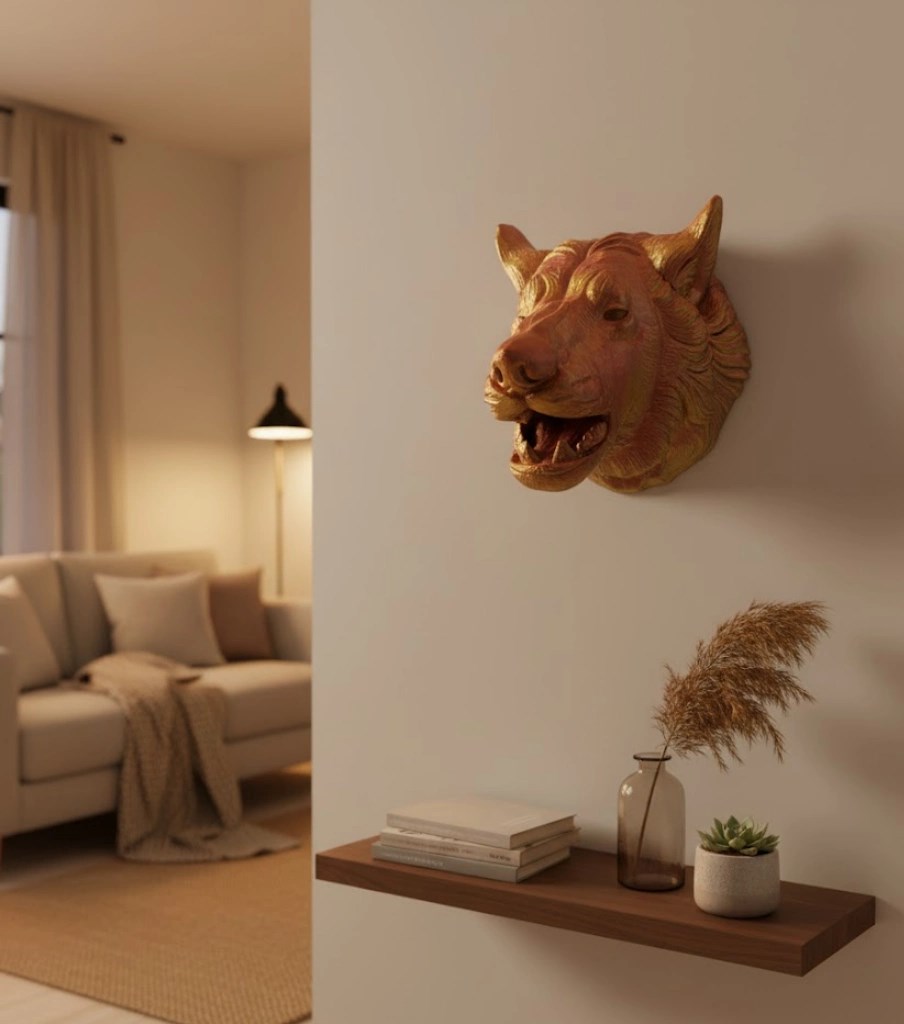 Dekoratif Altın Gold Kurt Duvar Heykeli Asılabilir Hediyelik 25x19 Cm