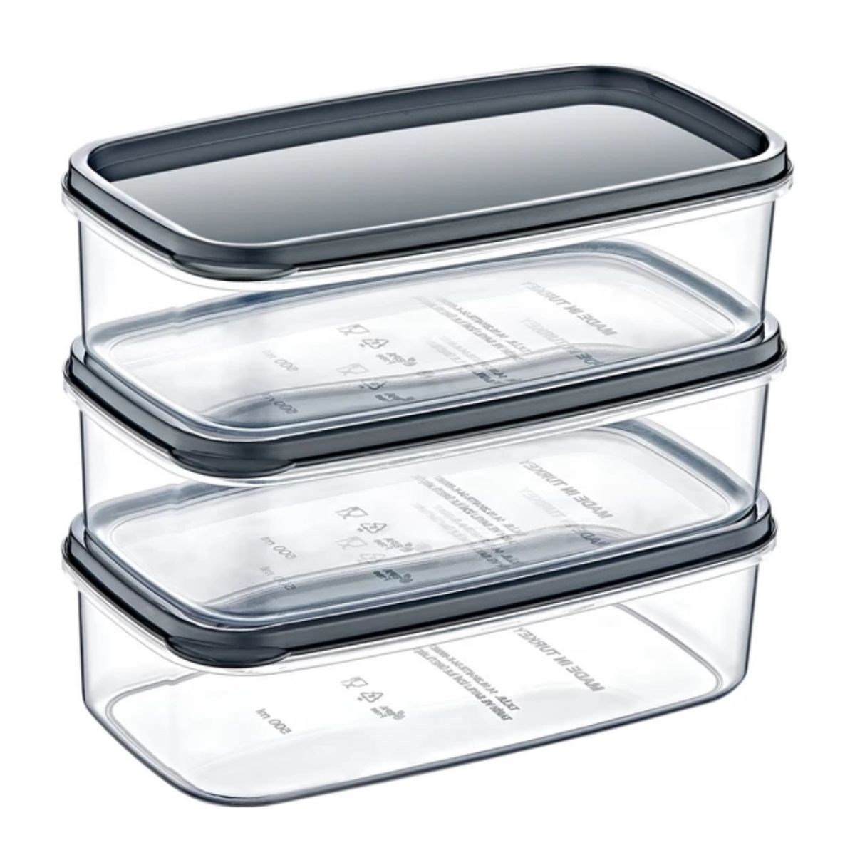 BUFFER® 3lü Dikdörtgen Şeffaf Kilitli Sızdırmaz Erzak Bakliyat Saklama Kabı Seti 3x800 ml - AK 533