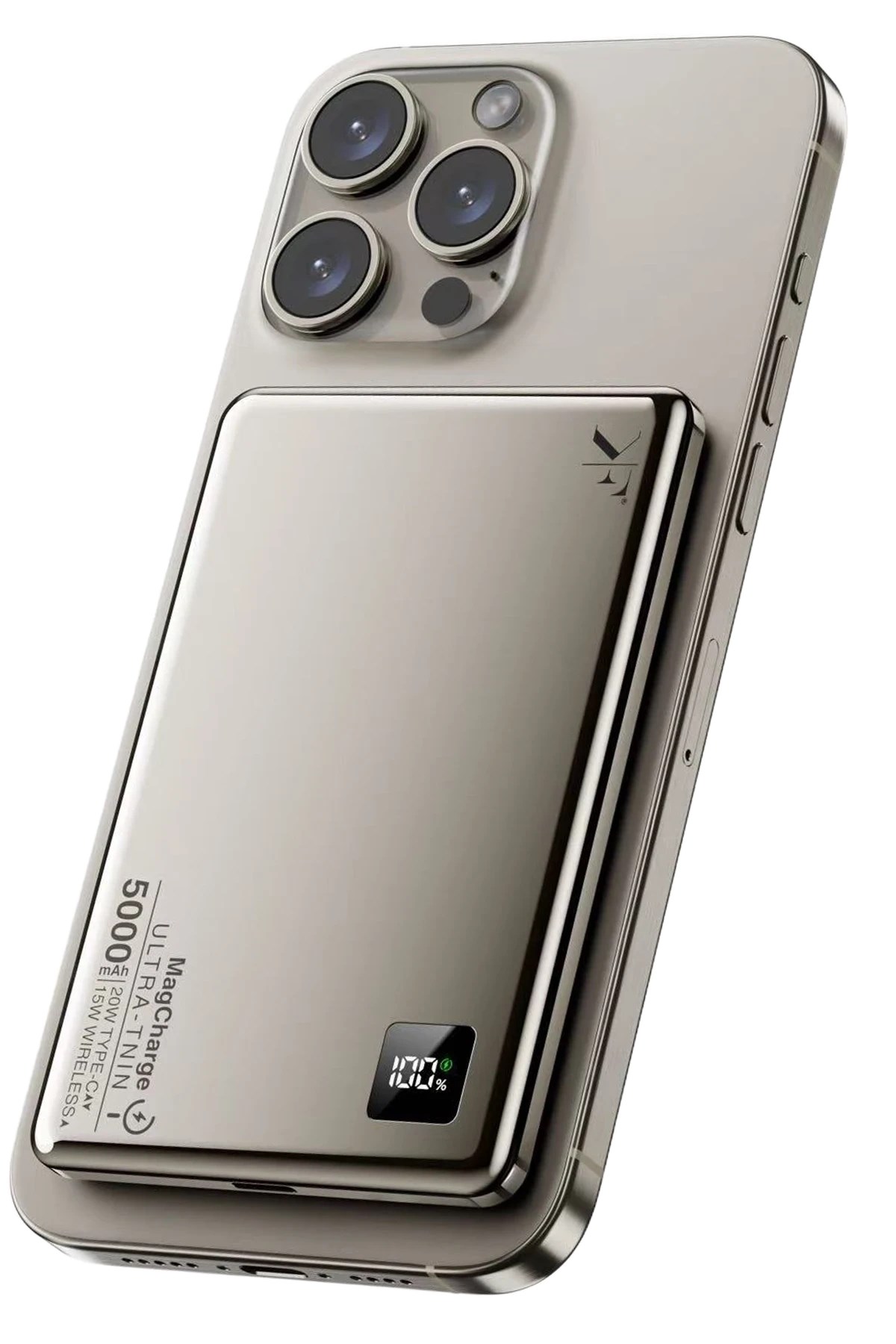 Mey İthalat® PW555 5.000 mAh Dijital Göstergeli 18W Type-C ve 15W Kablosuz Şarj PD Hızlı Şarj Magsafe Powerbank - Titanyum