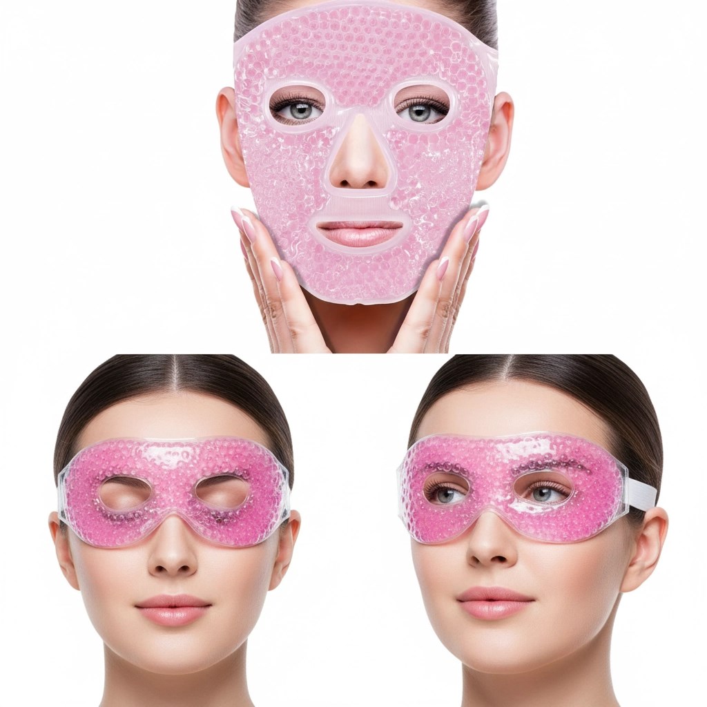 Terapi Jel Boncuklu Yüz Ve Göz Maskesi Seti Pembe Sıcak Ve Soğuk Kullanım
