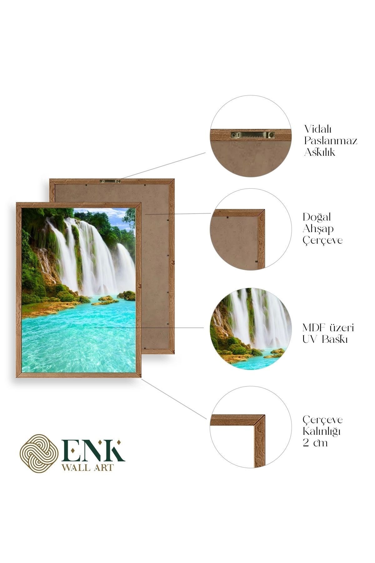 Tablolarımız gerçek ahşap çerçevelidir, çerçeve görünümlü değildir. ; ENK Wall Art Olarak Ahşap Çerçeveli Tablolar Üretiyoruz. ; Tablolarımız tek parça, 3 Parça, 5 Parça ve daha çok kategoride tasarımcılarımız tarafından ev ve ofisleriniz duvarları süslemek için tasarlanmaktadır. ; Ahşap Çerçeveli Duvar Tabloları ile yaşam alanlarınıza yepyeni bir görünüm kazandırın. ; Yıllarca dayanacağından emin olduğumuz sağlam çerçevelere sahip yüksek kaliteli ahşaptan üretilmiştir. ; İster bir köşeyi süslemek isteyin, ister evinizi yenilemek , bu ahşap tablolar herhangi bir yaşam alanına stil ve işlev getirecektir. ; Duvara kolay bir şekilde monte edilir. ; Uzun ömürlü kullanım için sağlam ahşap çerçeveden yapılmış, dayanıklı ve güçlü. ; Duvara monte edilebilir tasarımı, yaşam alanlarında veya yatak odalarında duvara kolayca asılmasını sağlar. ; Pürüzsüz üst yüzeyi temiz kalmayı kolaylaştırır. ; Herhangi bir stile uyacak şekilde çeşitli renklerde gelir. ; Kolay yeniden düzenleme için hafif ve portatif. ; Küçük oturma odaları veya dar alanlar için mükemmel boyut. ; Eve taşınma hediyesi olarak idealdir. ; Herhangi bir evin dekorunu süslemek için harika bir yol. ; Herhangi bir modern veya çağdaş iç tasarıma mükemmel bir katkı. ; Tablo içi 3 mm mdf (ahşap) malzeme üzeri uv baskıdır. ; Renkler canlı ve solma yapmaz. ; Kırılma, bükülme ve çizilmeye karşı dayanıklıdır.;