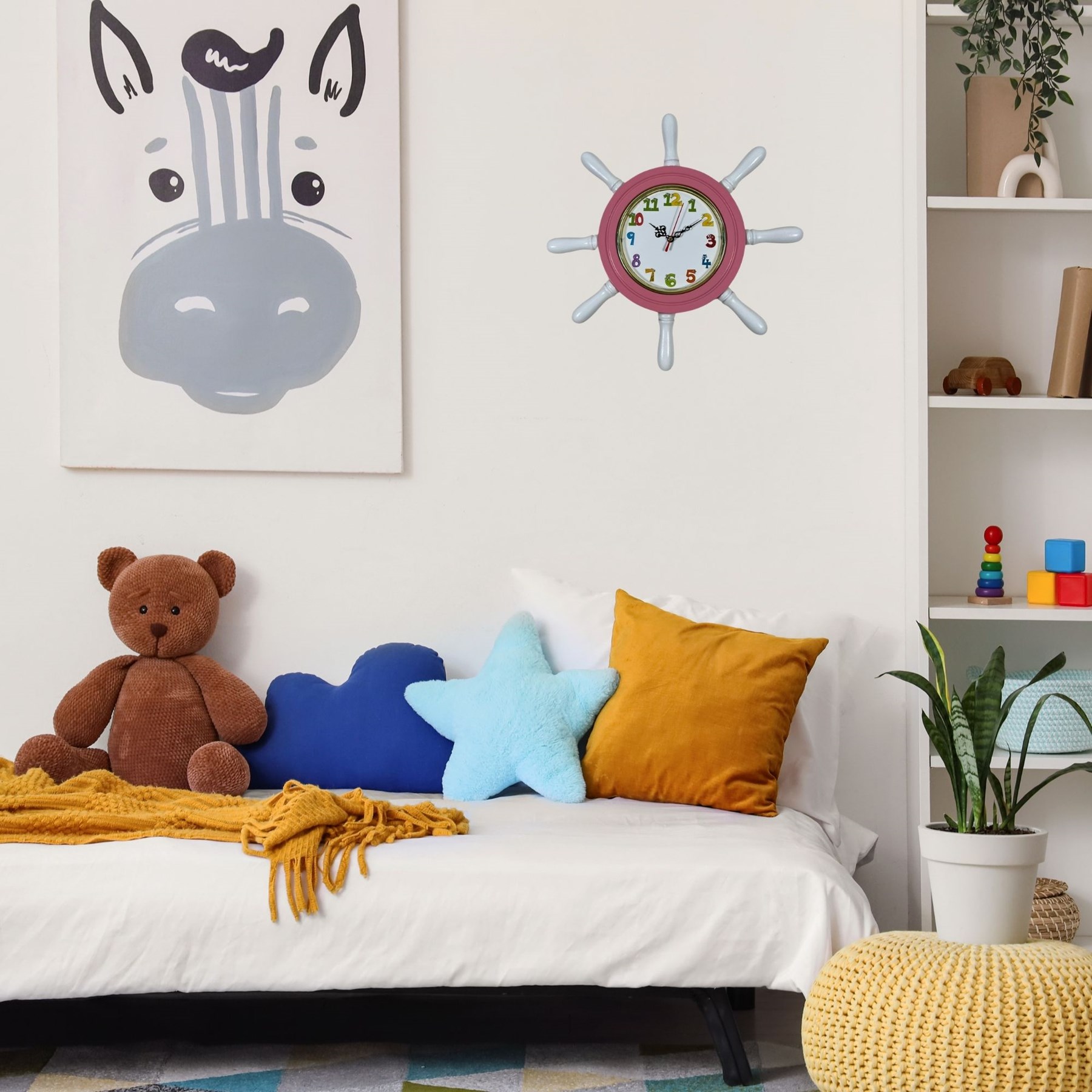Pembe Çocuk Odası Kavelalı Dümen Duvar Saati