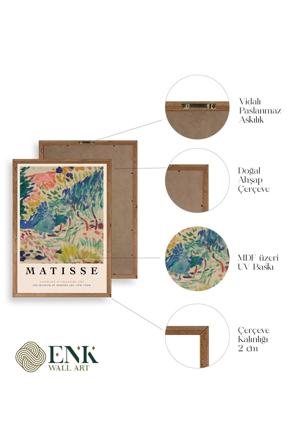 Tablolarımız gerçek ahşap çerçevelidir, çerçeve görünümlü değildir. ; ENK Wall Art Olarak Ahşap Çerçeveli Tablolar Üretiyoruz. ; Tablolarımız tek parça, 3 Parça, 5 Parça ve daha çok kategoride tasarımcılarımız tarafından ev ve ofisleriniz duvarları süslemek için tasarlanmaktadır. ; Ahşap Çerçeveli Duvar Tabloları ile yaşam alanlarınıza yepyeni bir görünüm kazandırın. ; Yıllarca dayanacağından emin olduğumuz sağlam çerçevelere sahip yüksek kaliteli ahşaptan üretilmiştir. ; İster bir köşeyi süslemek isteyin, ister evinizi yenilemek , bu ahşap tablolar herhangi bir yaşam alanına stil ve işlev getirecektir. ; Duvara kolay bir şekilde monte edilir. ; Uzun ömürlü kullanım için sağlam ahşap çerçeveden yapılmış, dayanıklı ve güçlü. ; Duvara monte edilebilir tasarımı, yaşam alanlarında veya yatak odalarında duvara kolayca asılmasını sağlar. ; Pürüzsüz üst yüzeyi temiz kalmayı kolaylaştırır. ; Herhangi bir stile uyacak şekilde çeşitli renklerde gelir. ; Kolay yeniden düzenleme için hafif ve portatif. ; Küçük oturma odaları veya dar alanlar için mükemmel boyut. ; Eve taşınma hediyesi olarak idealdir. ; Herhangi bir evin dekorunu süslemek için harika bir yol. ; Herhangi bir modern veya çağdaş iç tasarıma mükemmel bir katkı. ; Tablo içi 3 mm mdf (ahşap) malzeme üzeri uv baskıdır. ; Renkler canlı ve solma yapmaz. ; Kırılma, bükülme ve çizilmeye karşı dayanıklıdır.;