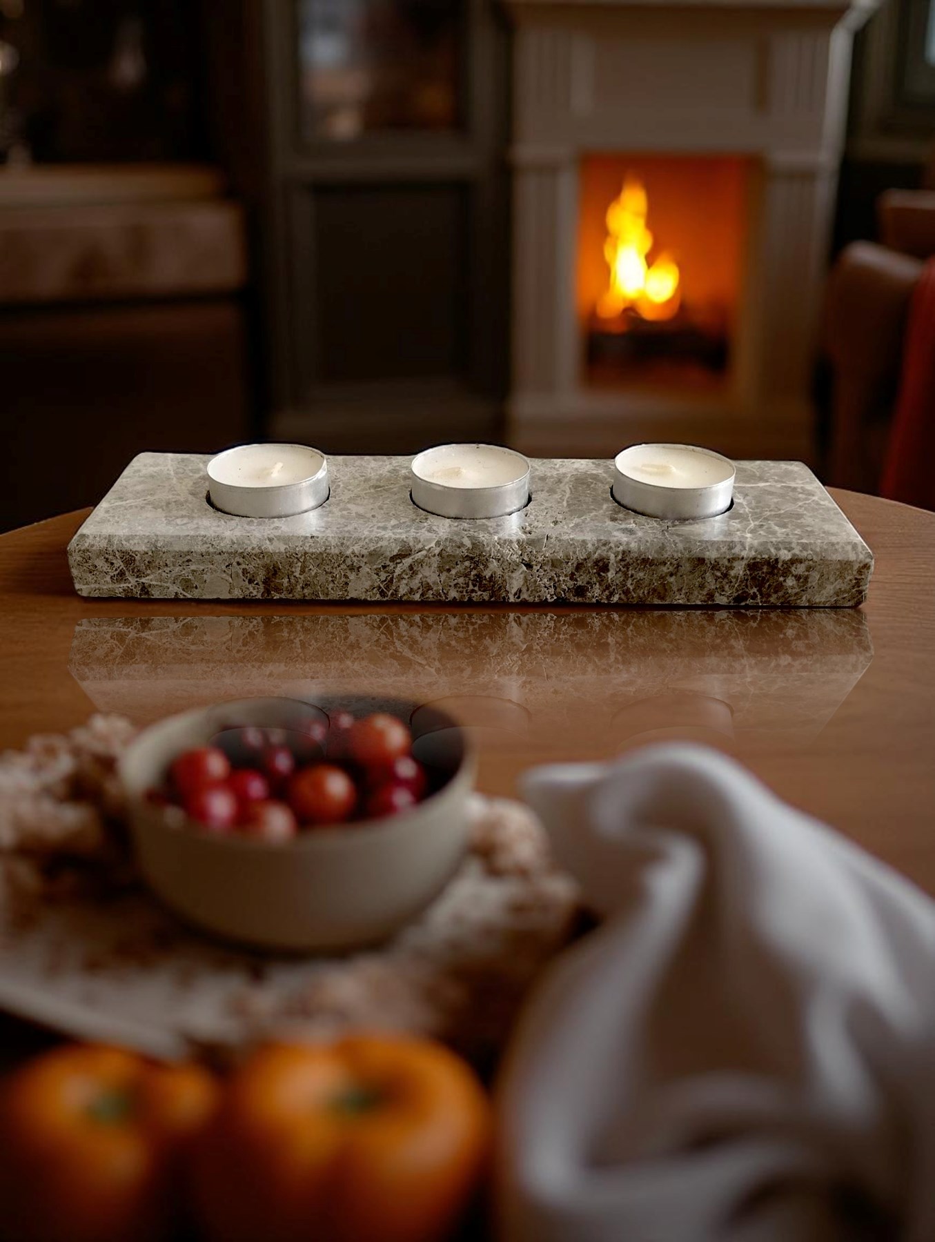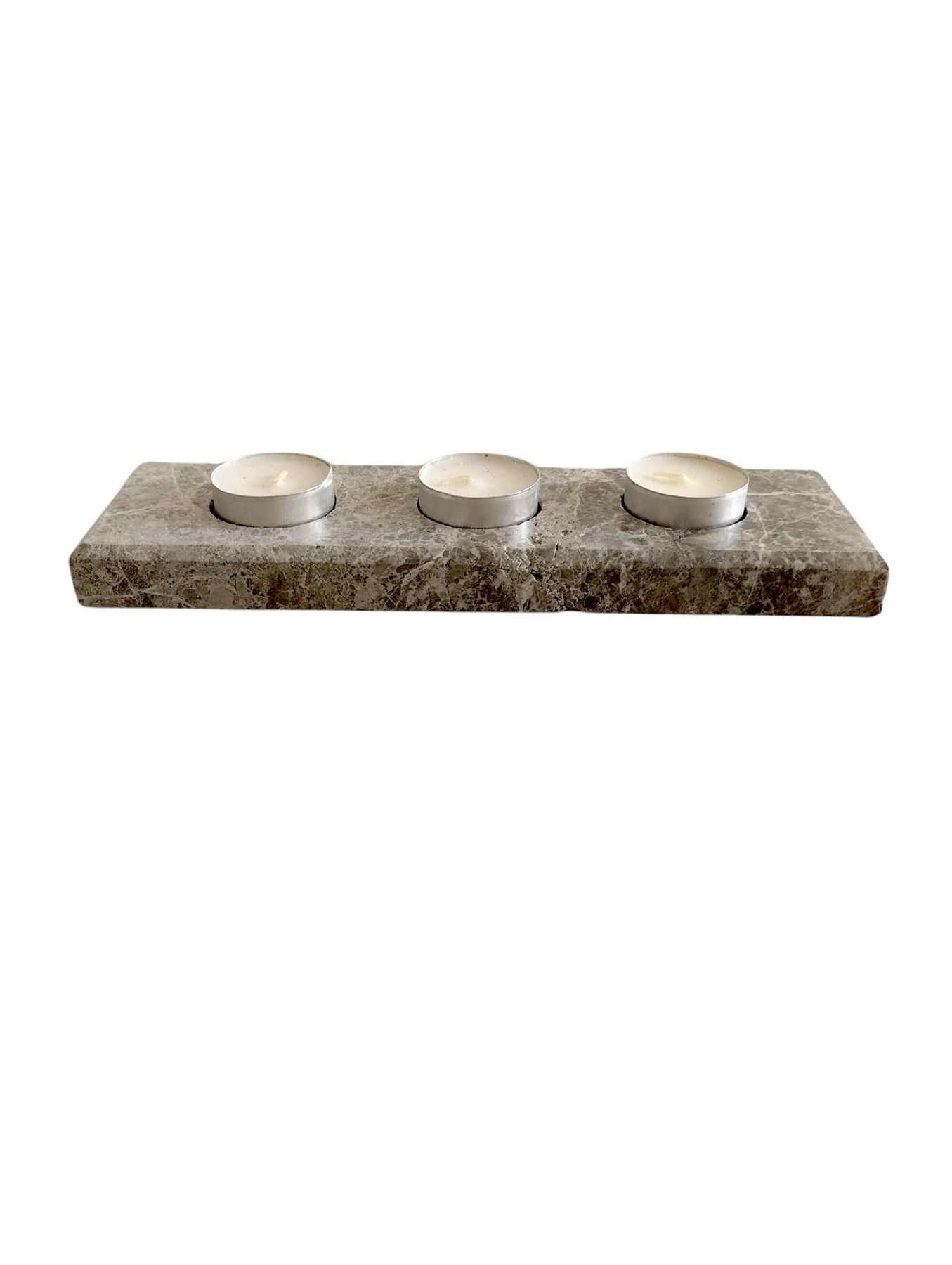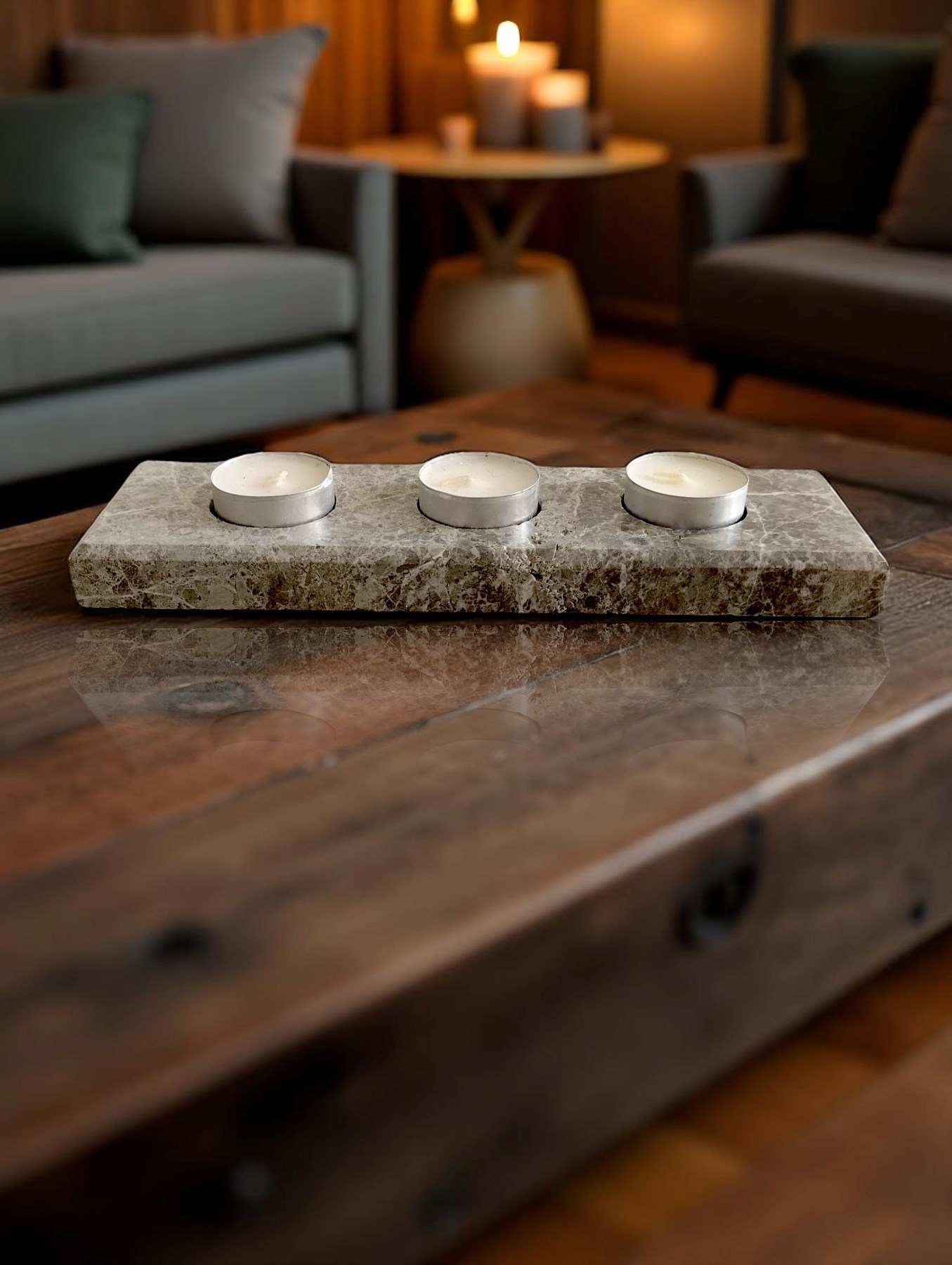 Doğal mermerden üretilen bu 3 hazneli mumluk, zarif ve modern tasarımıyla yaşam alanlarınıza sofistike bir dokunuş katar. Her biri el işçiliğiyle şekillendirilmiş hazneler, tealight mumlar için idealdir. 23 x 7 cm ölçülerindeki kompakt yapısıyla masa, sehpa veya raflar üzerinde şık bir dekorasyon öğesi olarak öne çıkar. Doğaltaşın kendine özgü damar yapısı sayesinde her ürün eşsizdir.