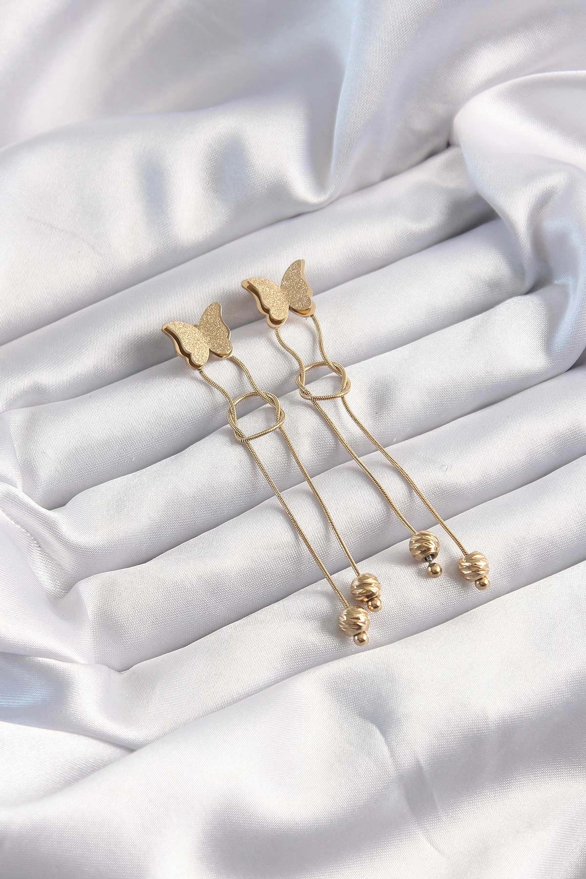 Mey İthalat® 316L Çelik Altın Renk Sallantılı Düğüm Model Kelebek Küpe