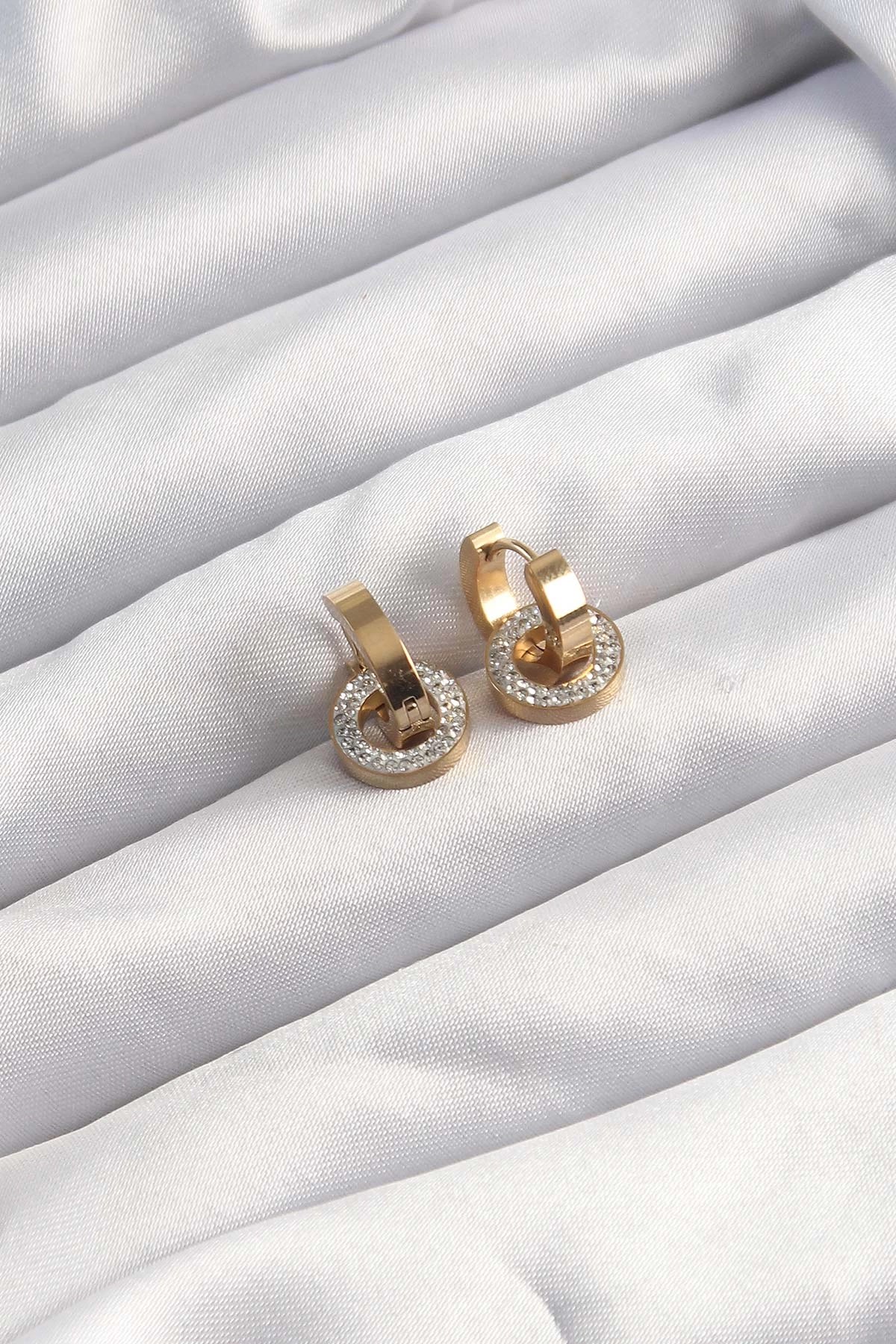Mey İthalat® 316L Çelik Altın Renk Zirkon Taşlı Halka Model Küpe