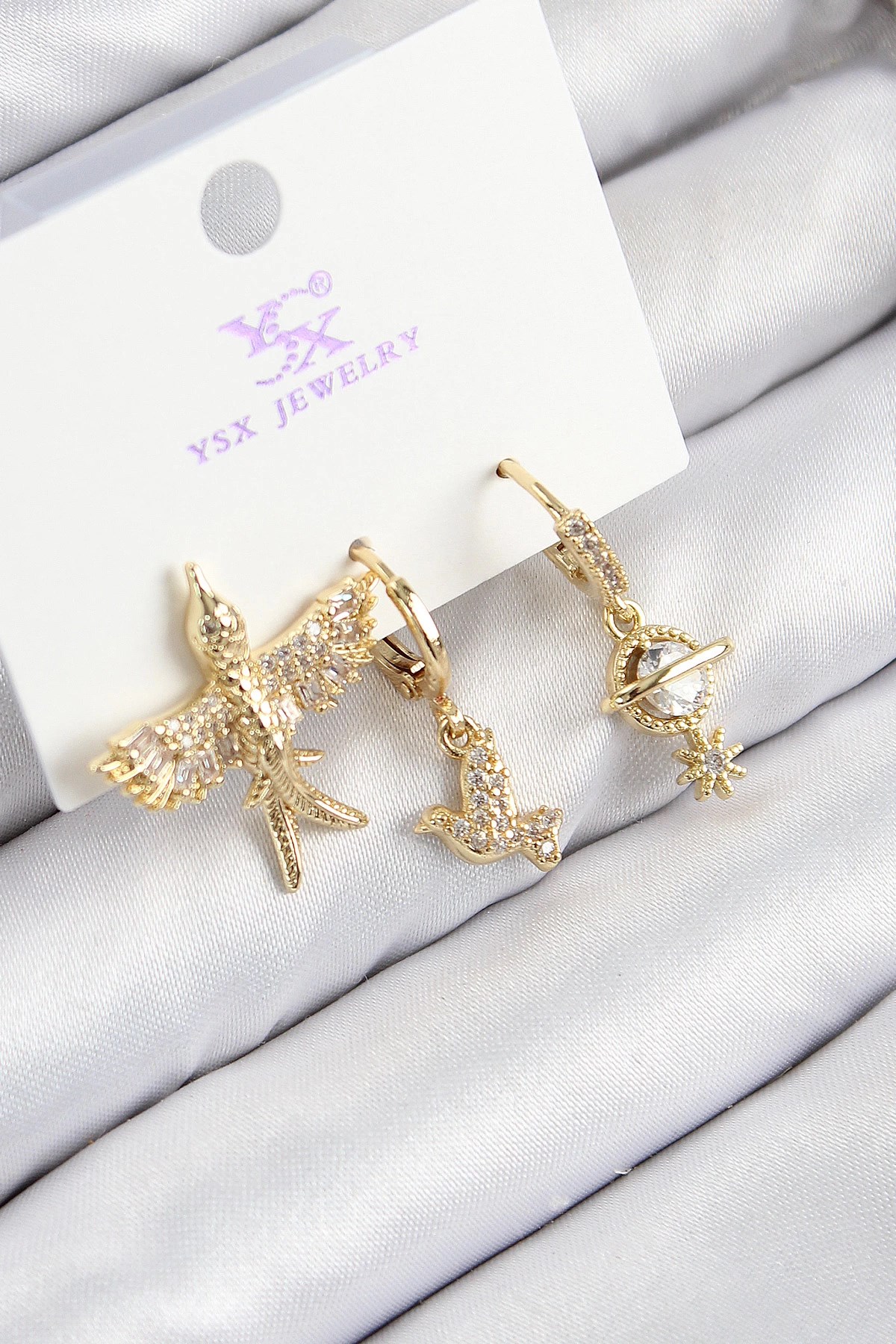 Mey İthalat® 316L Çelik Gold Renk Kadın Küpe Seti