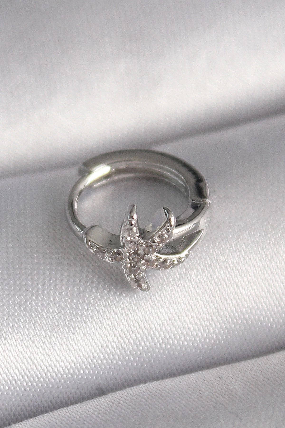 Mey İthalat® 316L Çelik Gümüş Renk Beyaz Minelik Kalp Sallantı Zirkon Taş Detay Tragus Piercing