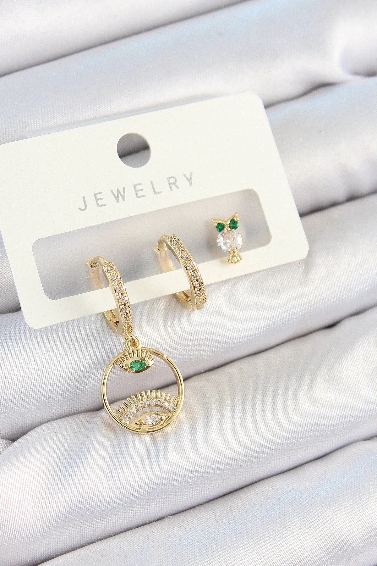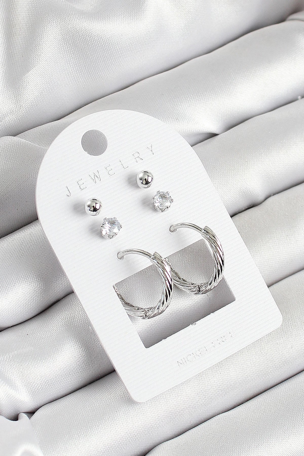 Mey İthalat® 316L Çelik Gümüş Renk Göz İşleme Zirkon Taş Detay Kadın Küpe