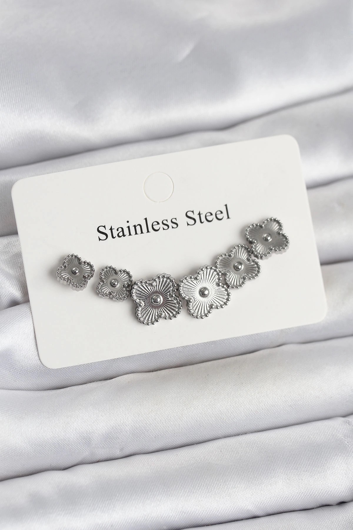 Mey İthalat® 316L Çelik Gümüş Renk Lotus Model Kadın Küpe