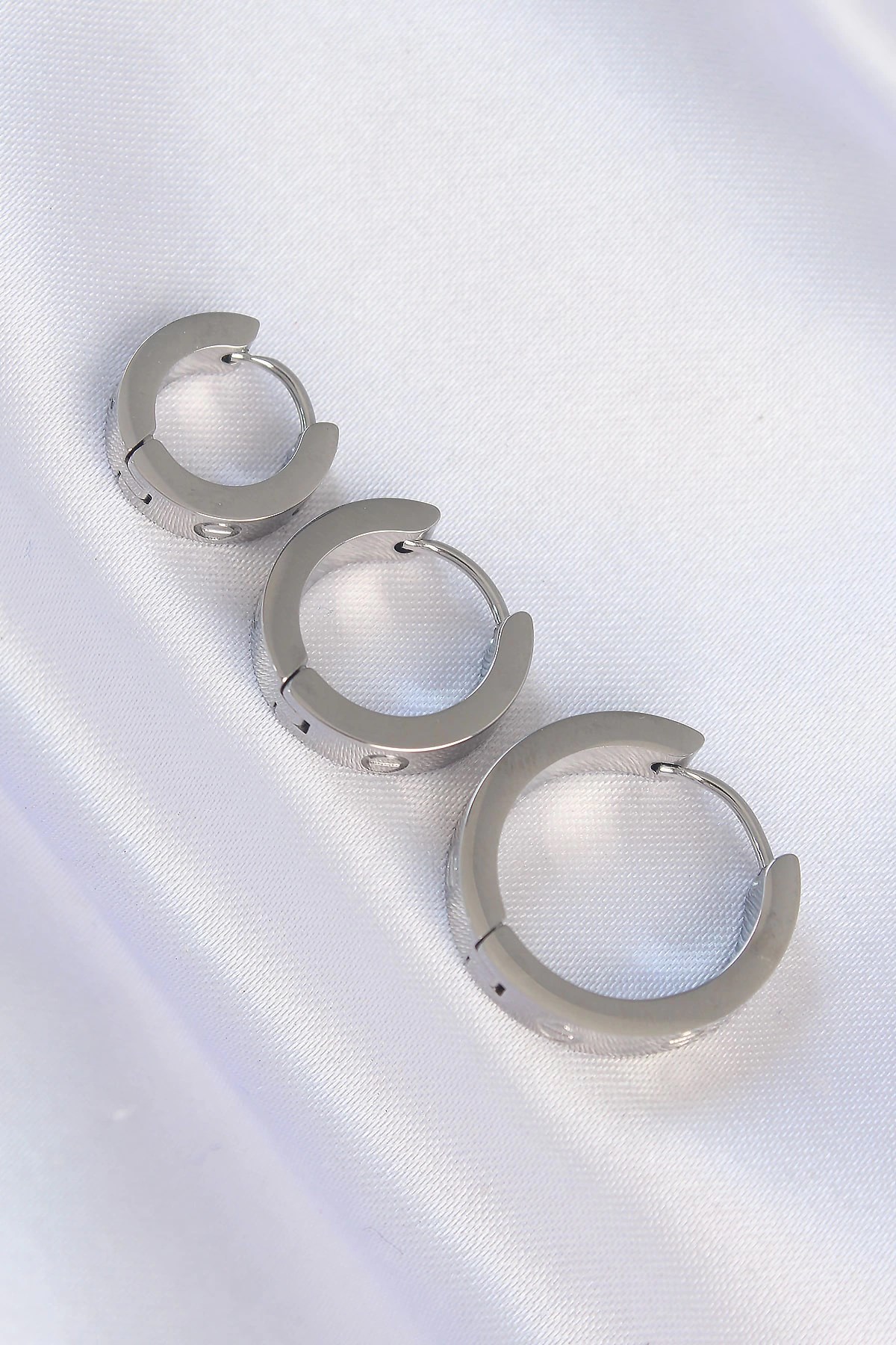 Mey İthalat® 316L Çelik Gümüş Renk Model 3lü Halka Küpe