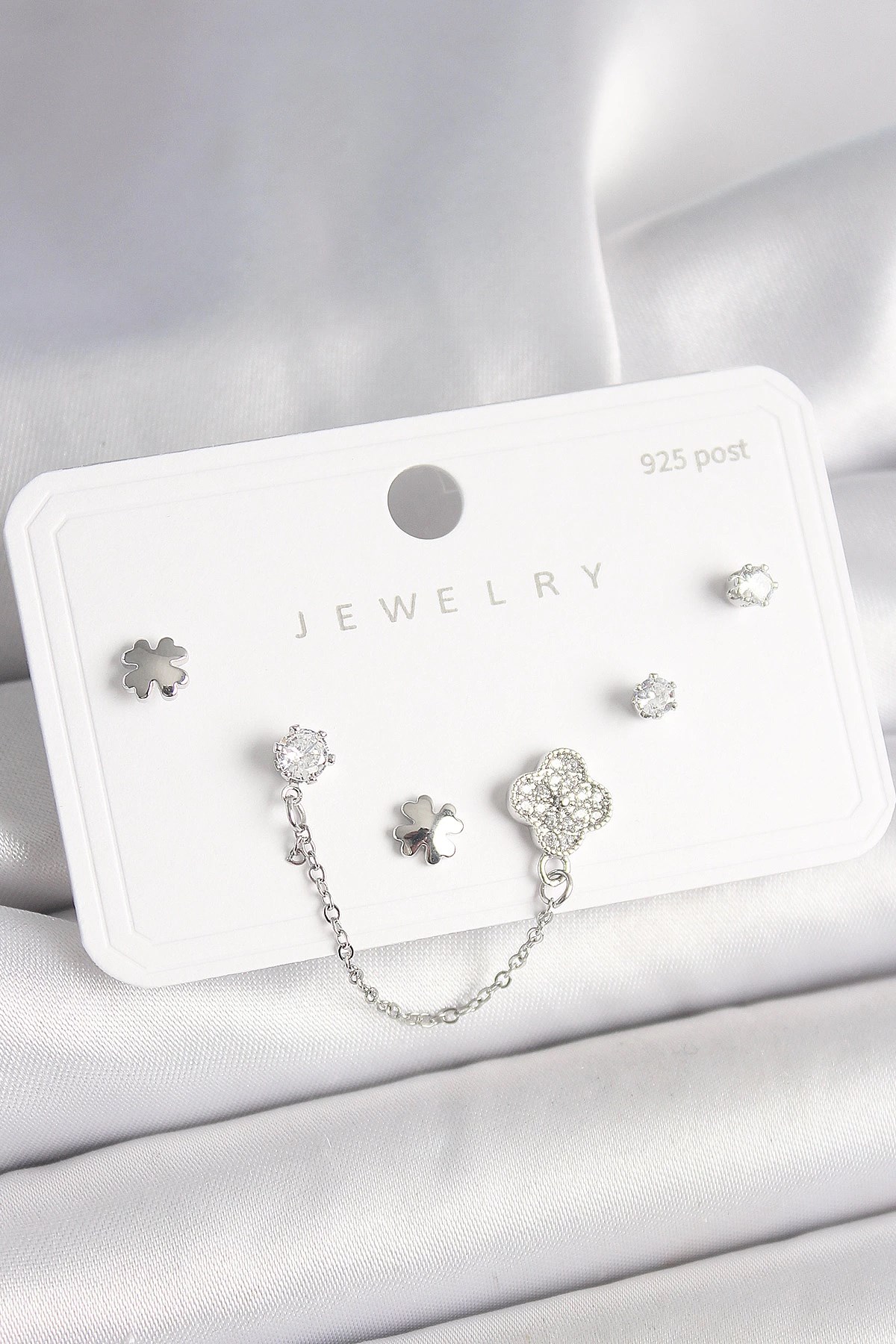 Mey İthalat® 316L Çelik Gümüş Renk Zirkon Taşlı Hilal Model Kadın Küpe Seti