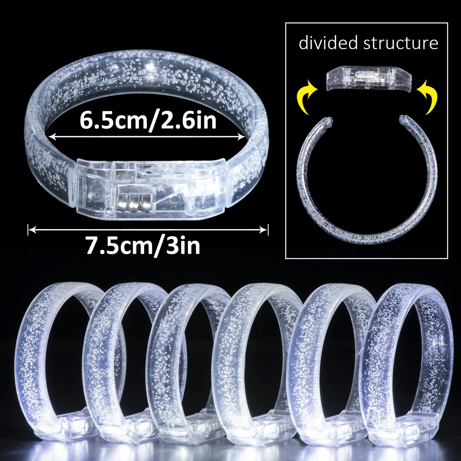 Beyaz-gümüş LED ışıklı kabarcıklı bileklik, şeffaf gövdesi ve baloncuk efektli yapısıyla şık bir ışıltı sunar. 3 adet AG13 pil ile çalışan bu bileklik hem çocuklar hem de yetişkinler için idealdir. Gece etkinlikleri, partiler, festivaller ve özel günler için modern bir aksesuar. Piller ürüne dahildir, kutudan çıkar çıkmaz kullanıma hazırdır.