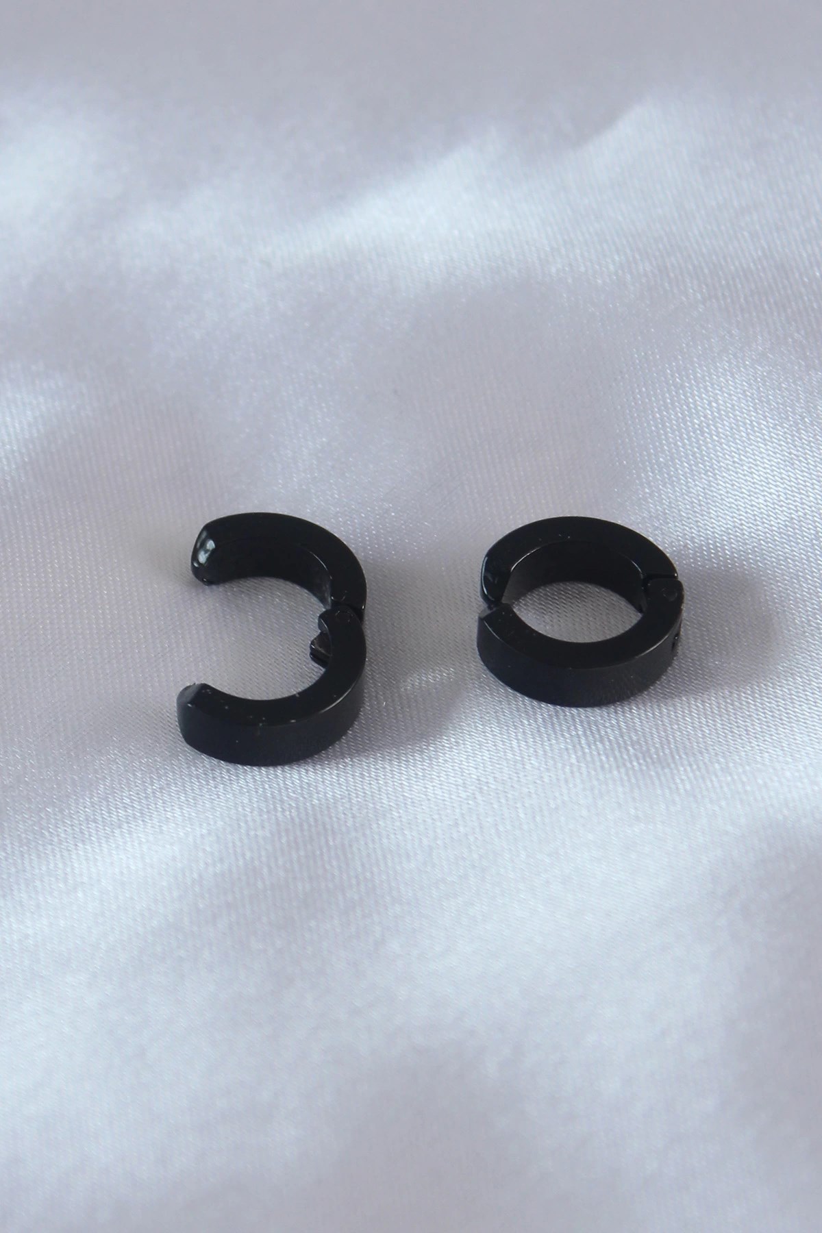 Mey İthalat® Çelik Siyah Renk Sıkıştırmalı Erkek Küpe