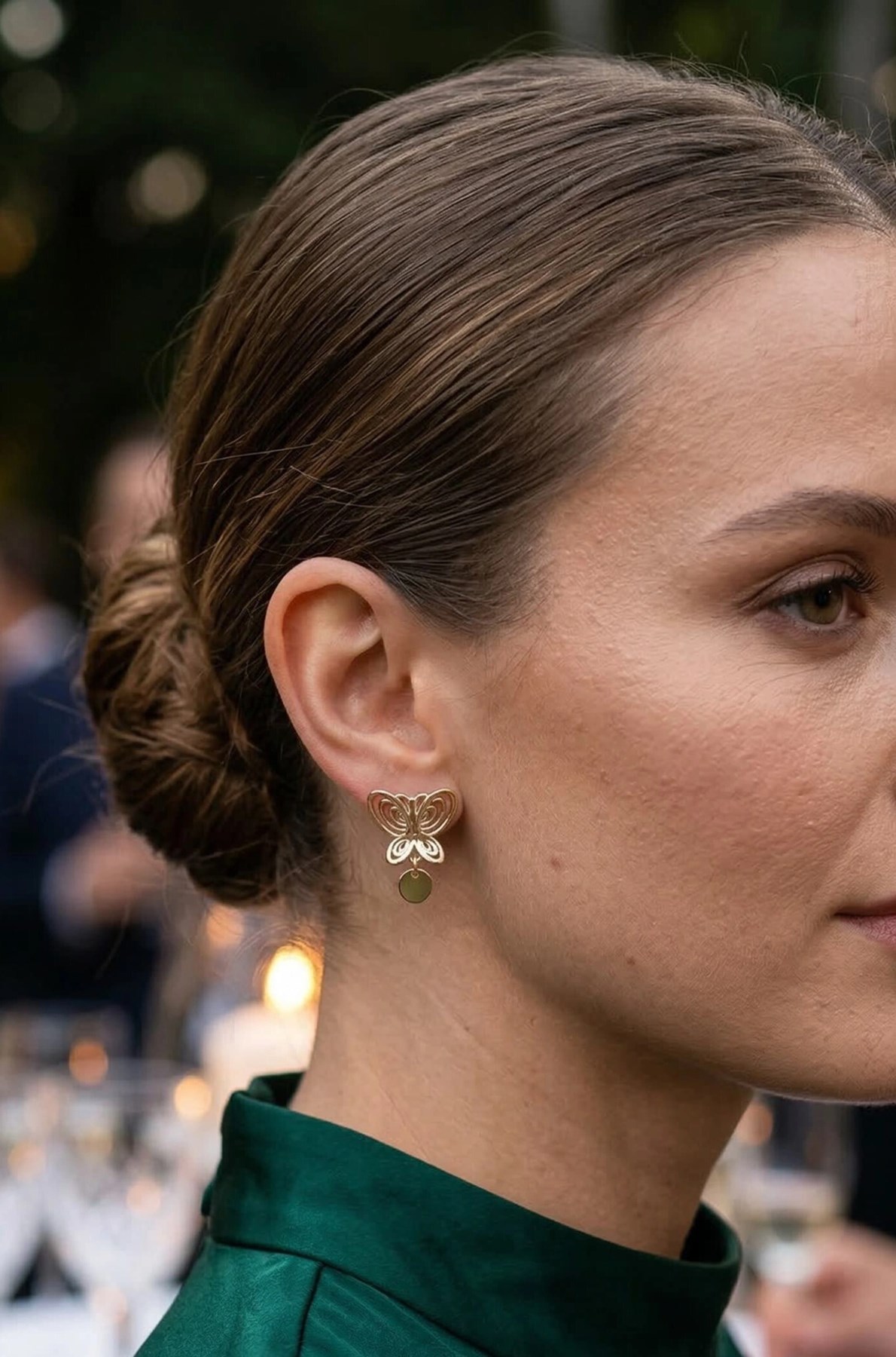 Mey İthalat® Füsun Küpesi Model Gold Renk Kelebek Model Pirinç Kadın Küpe
