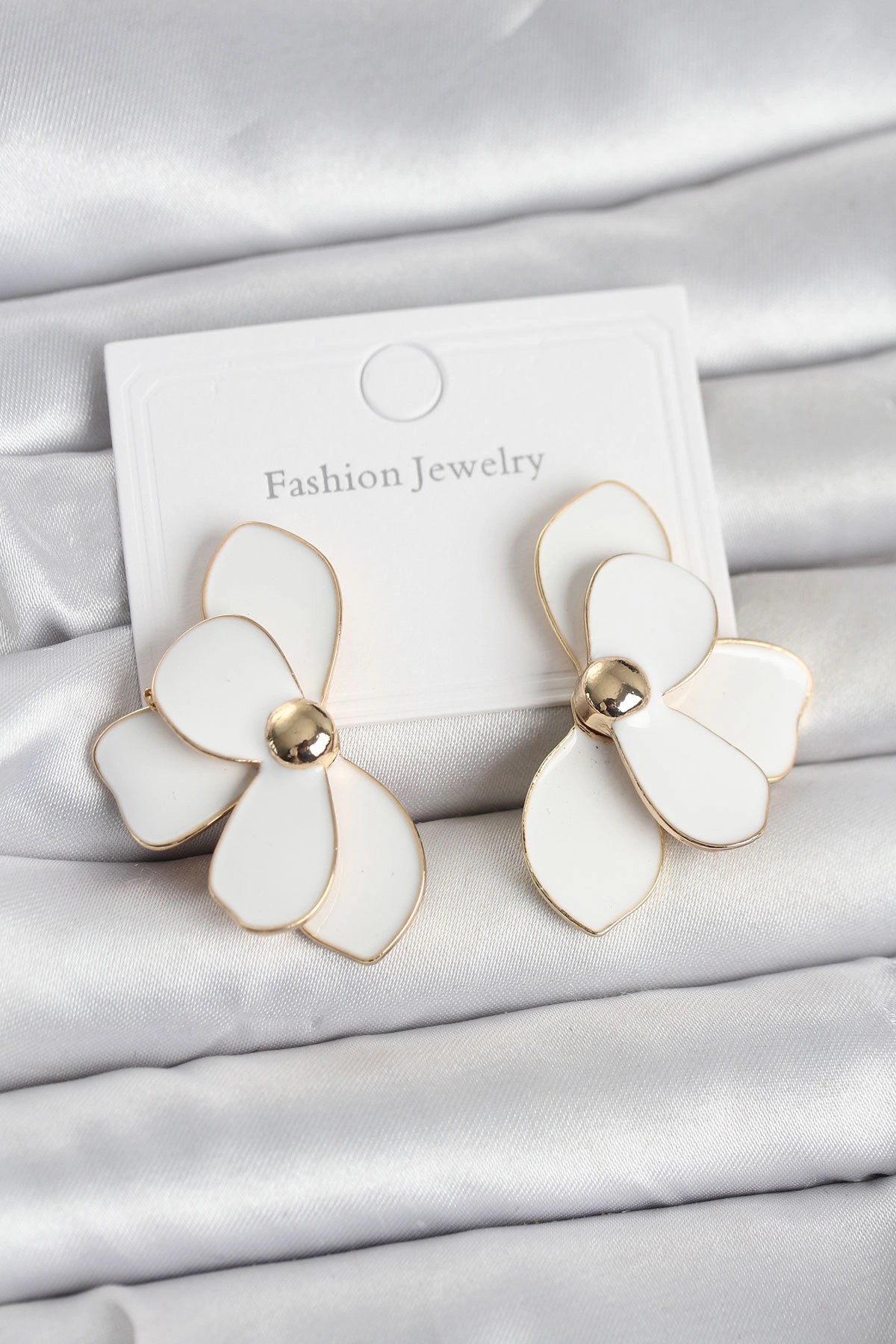 Mey İthalat® Gold Renk Yonca Damla Halka Model CCB Plastik Kadın Küpe Seti