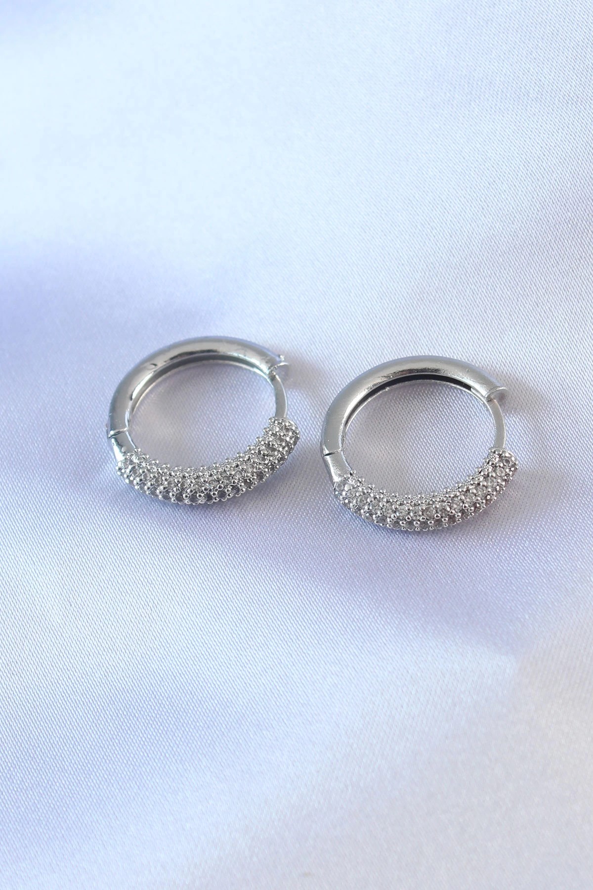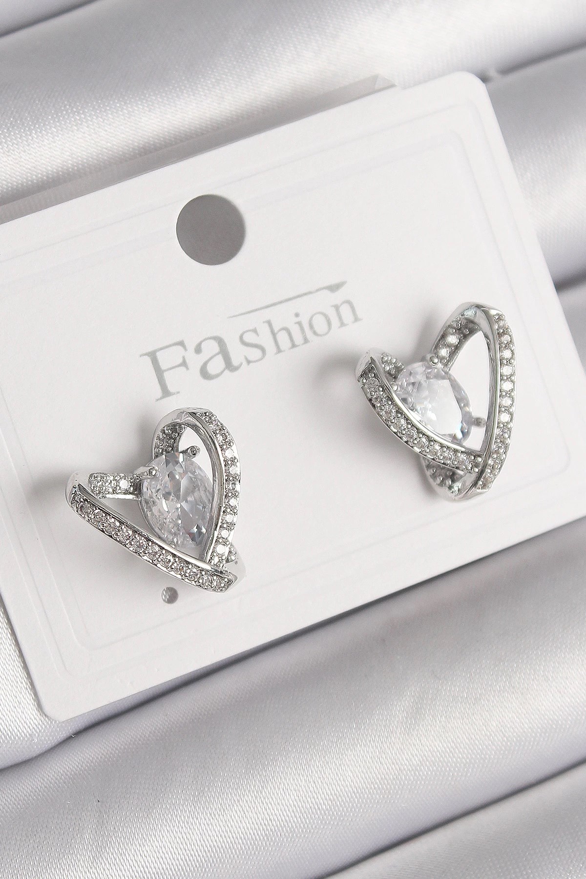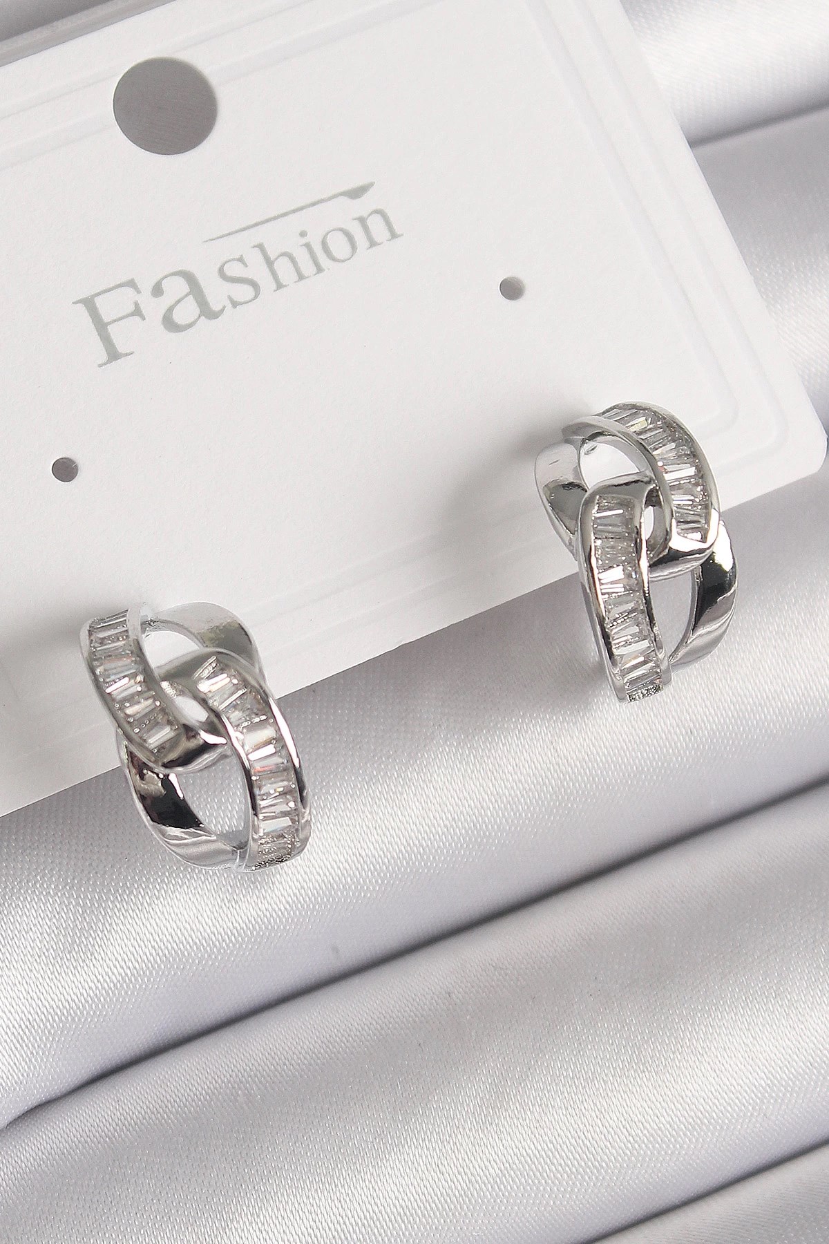 Mey İthalat® Gümüş Renk Zirkon Taşlı Halka Model Pirinç Kadın Küpe