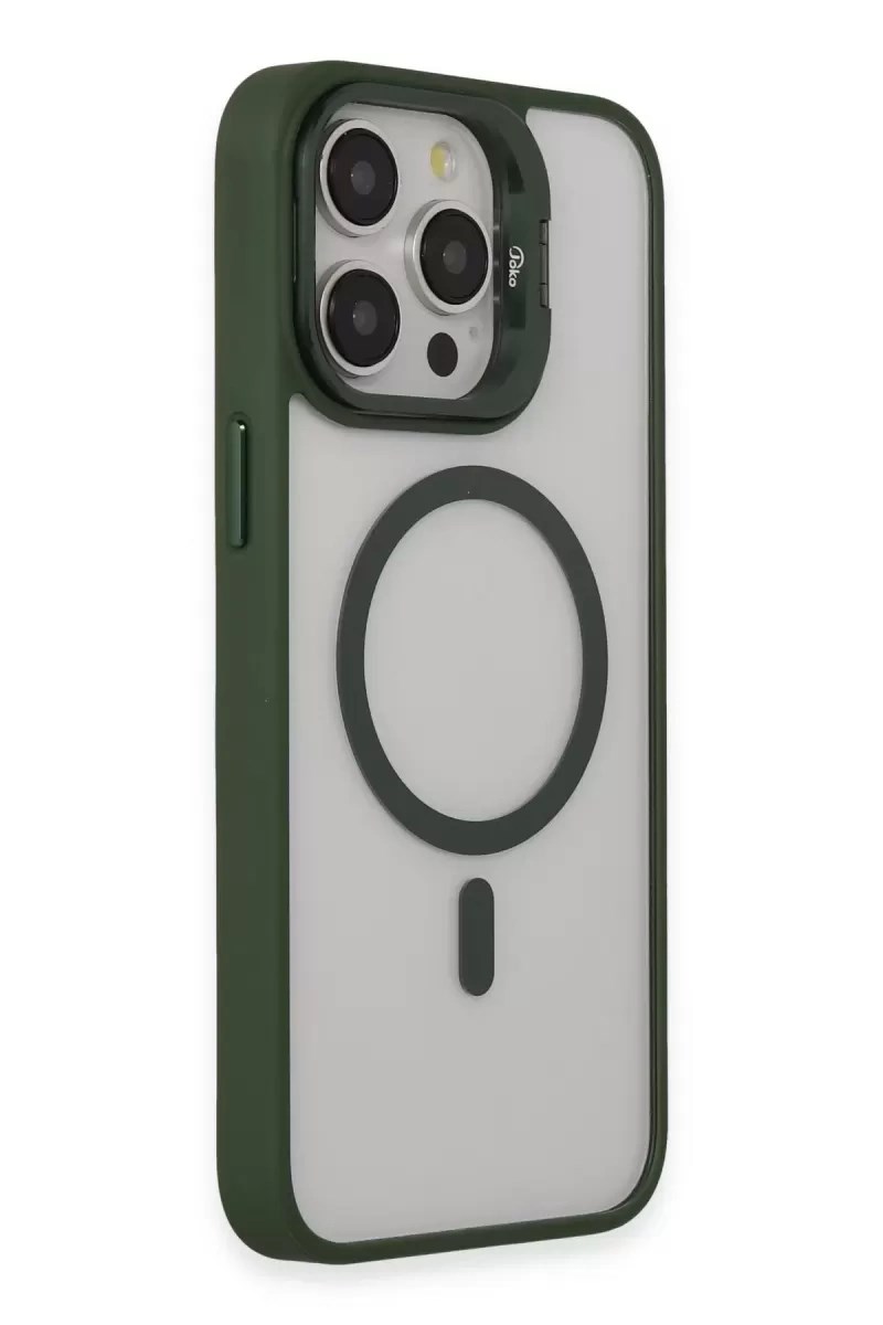 Mey İthalat® iPhone 15 Pro Kılıf Roblox Lens Magsafe Standlı Kapak - Koyu Yeşil
