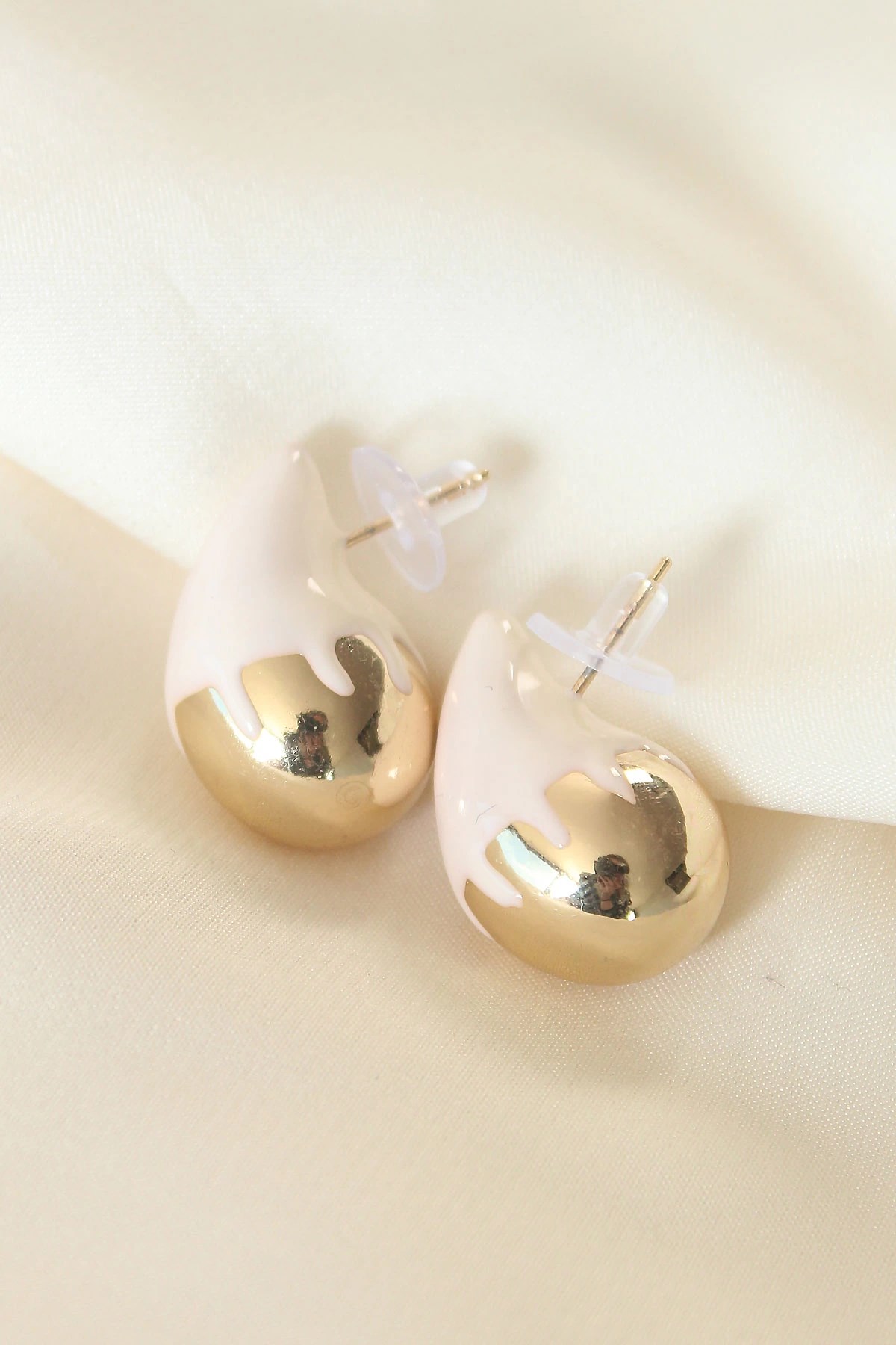 Mey İthalat® Minimal Beyaz Mineli Çift Renk Damla Küpe