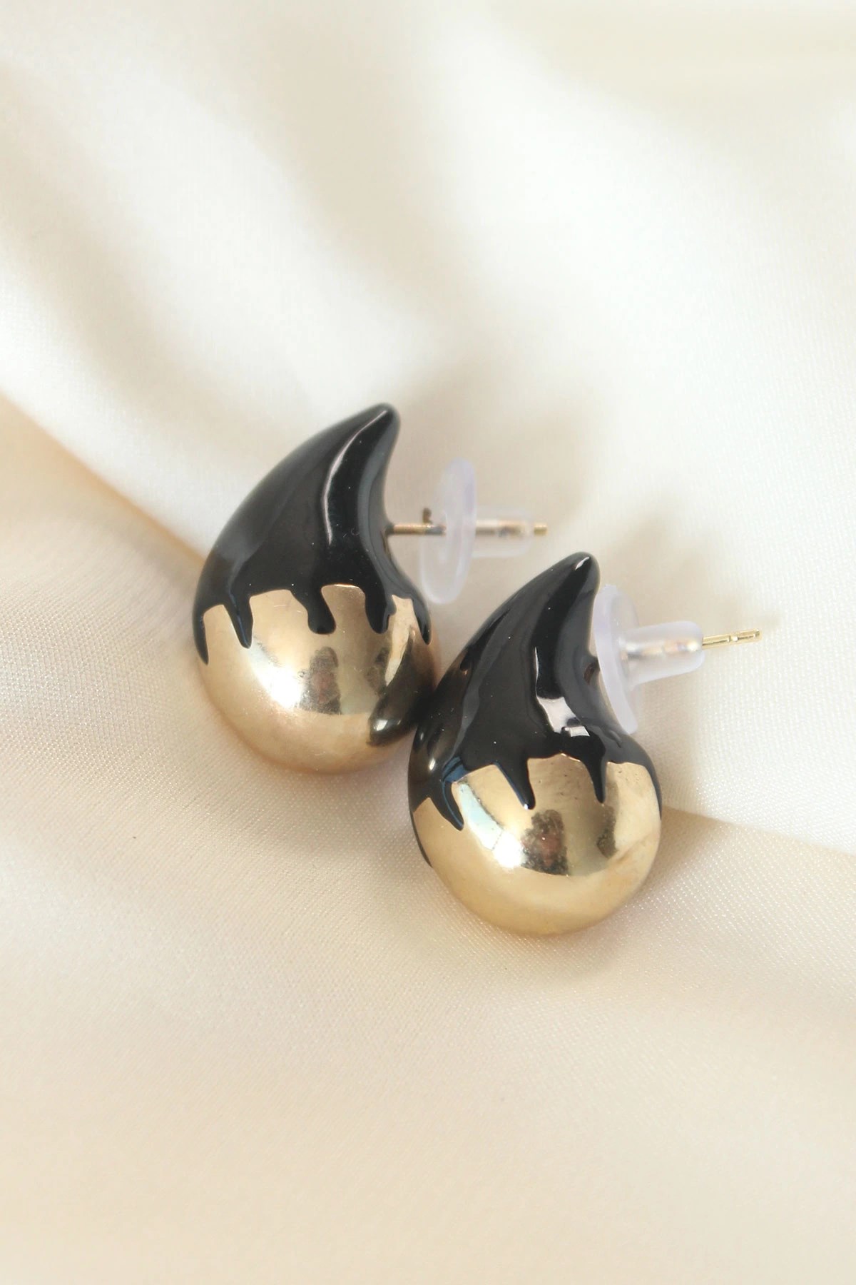Mey İthalat® Minimal Siyah Mineli Çift Renk Damla Küpe
