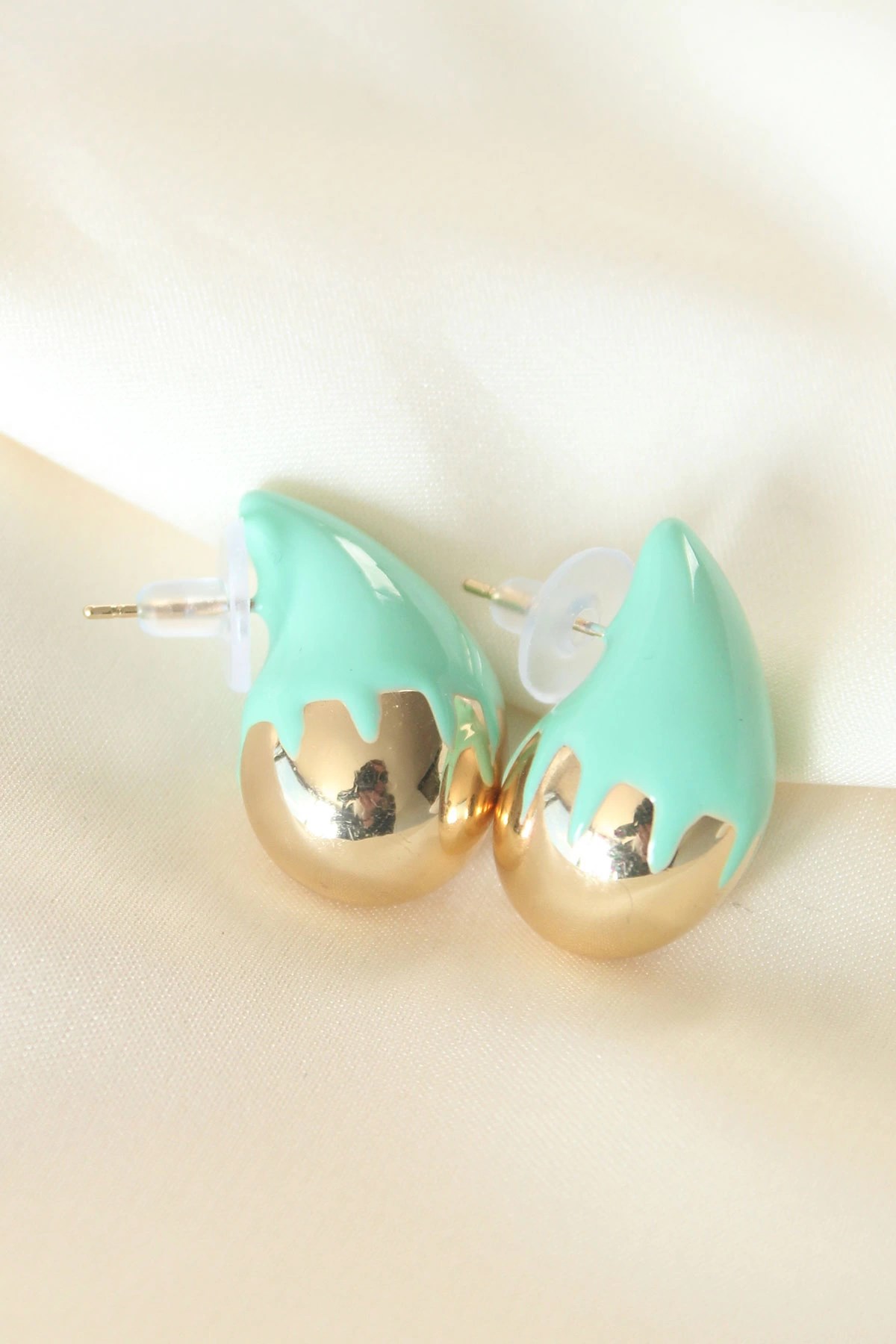 Mey İthalat® Minimal Turkuaz Mineli Çift Renk Damla Küpe