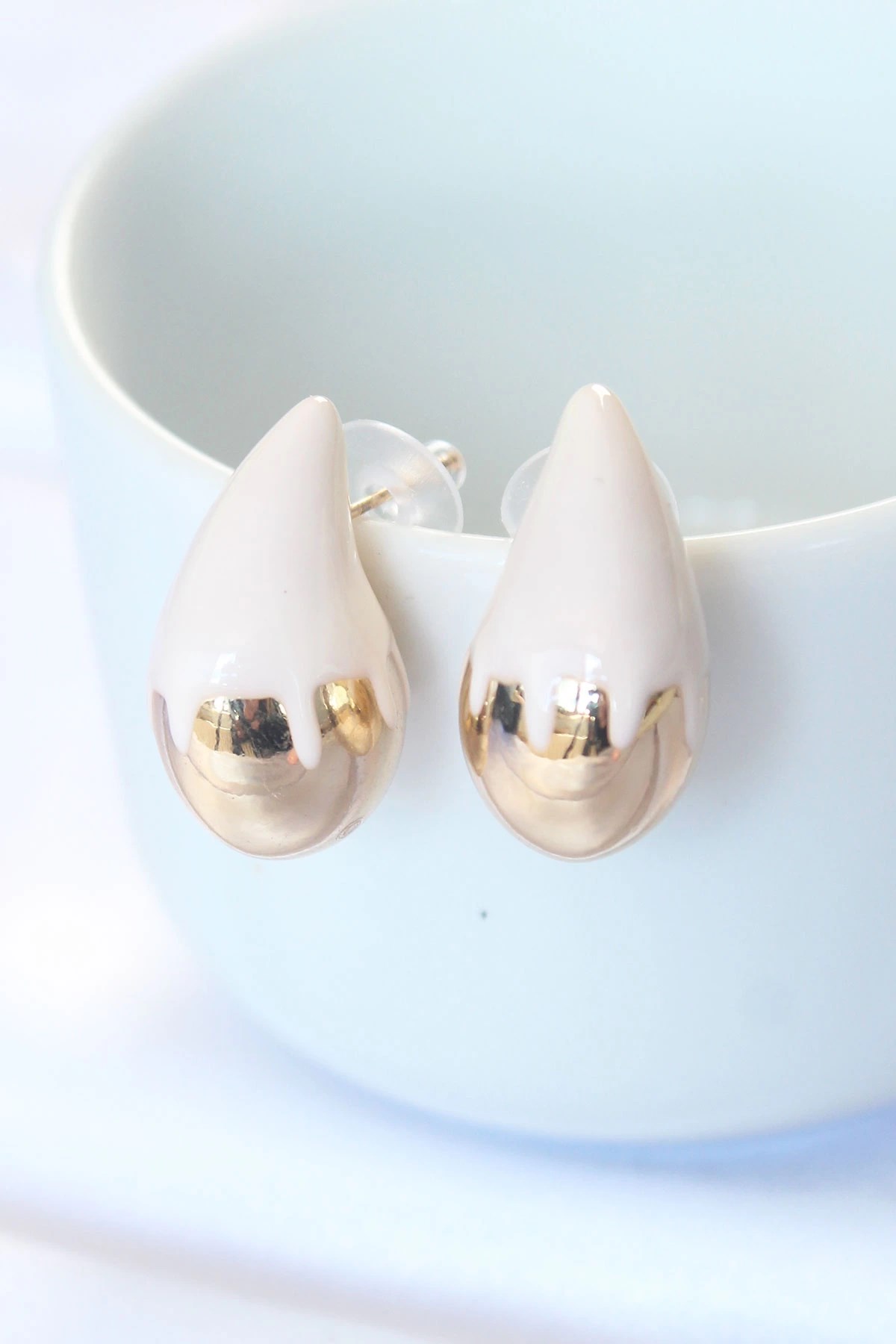 Mey İthalat® Pirinç Gold Gümüş Renkli Düz Plaka Halka Küpe