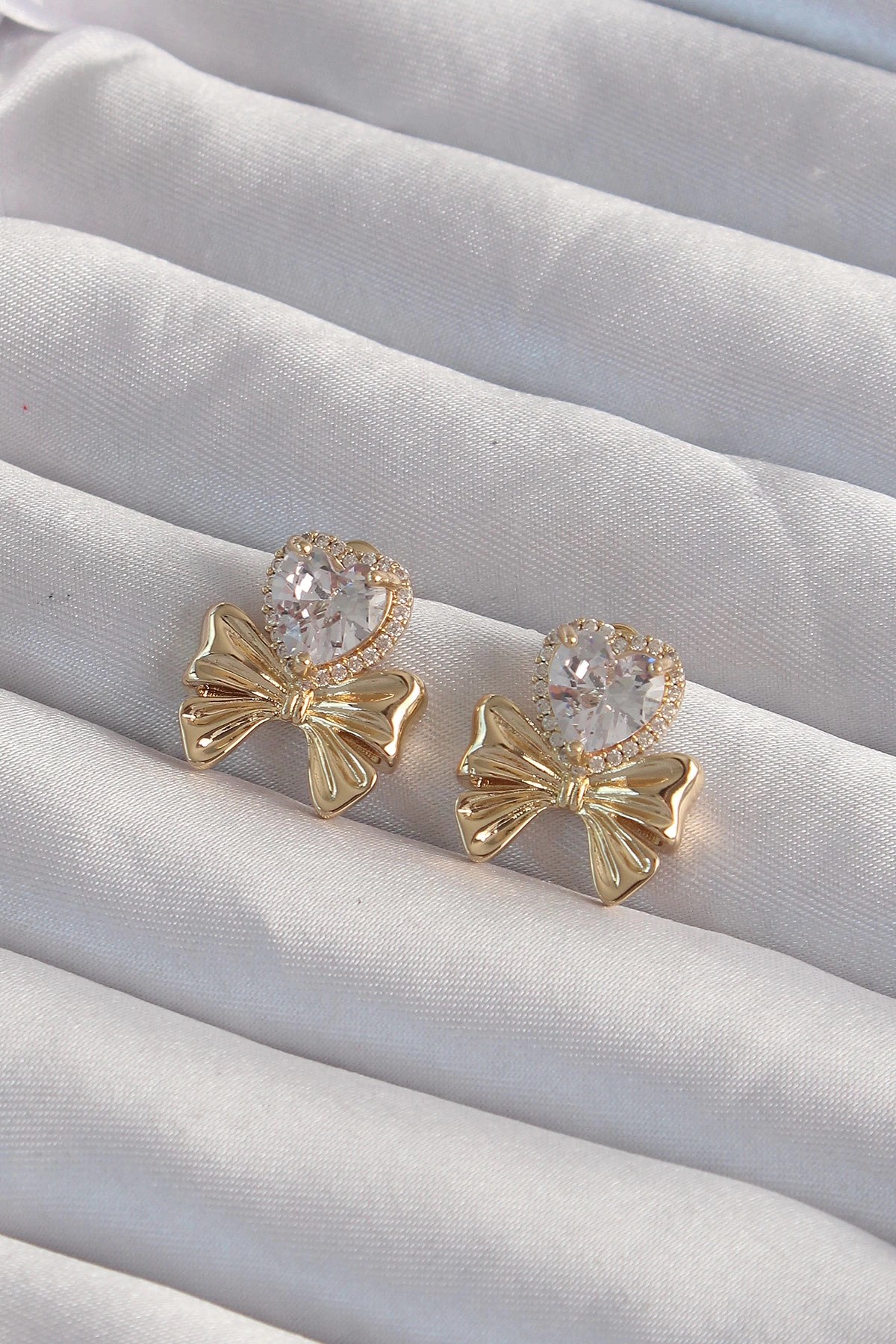 Mey İthalat® Pirinç Gold Renk 3D Kalp Leopar Model Kadın Küpe