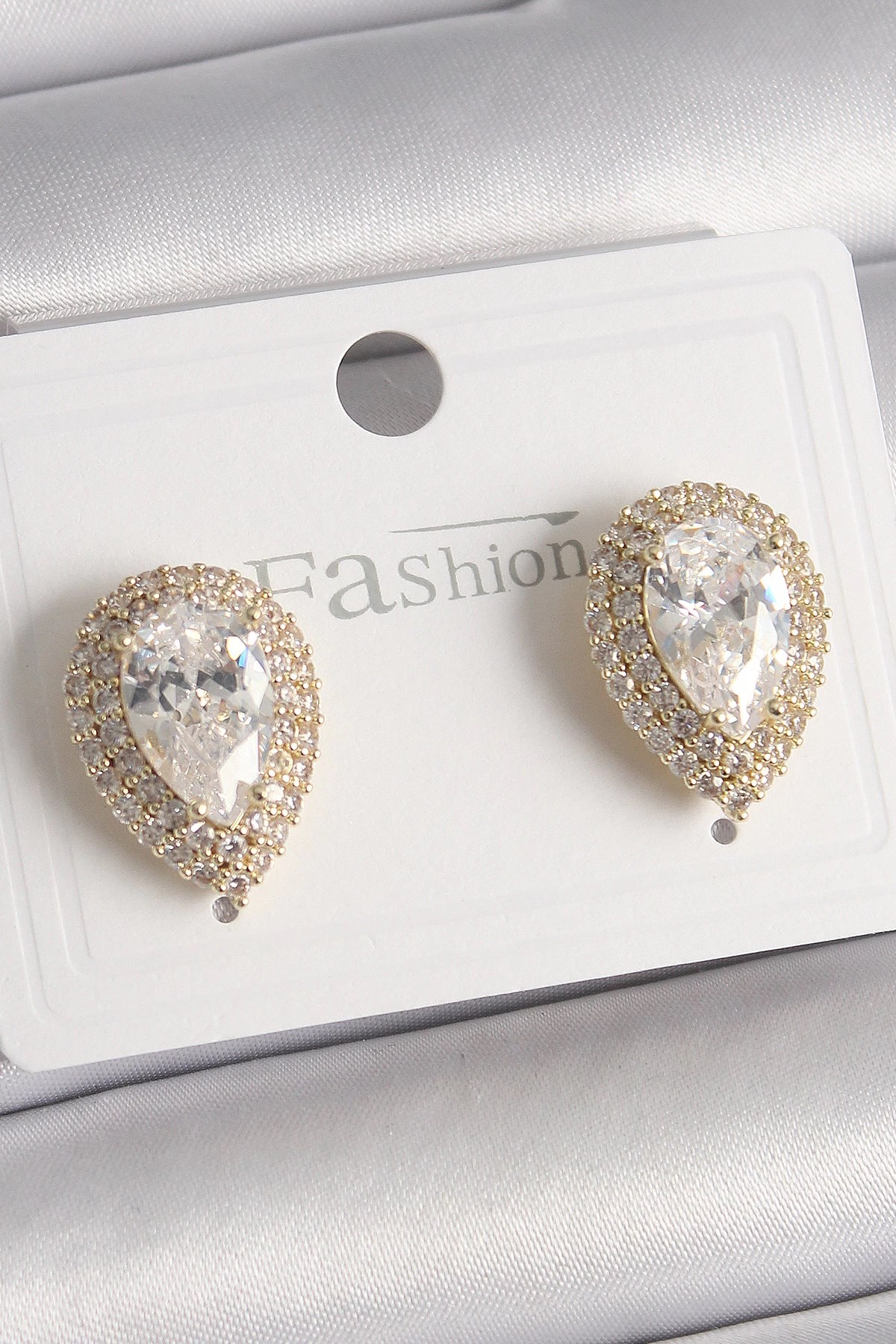 Mey İthalat® Pirinç Gold Renk İnci Kare Model Kadın Küpe