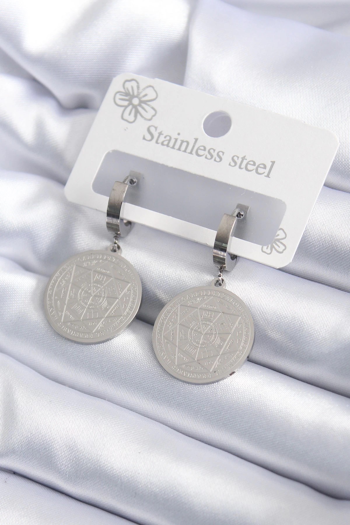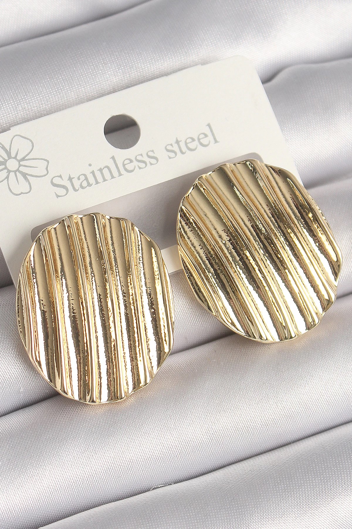 Mey İthalat® Pirinç Gold Renk İşlemeli Daire Plaka Model Kadın Küpe