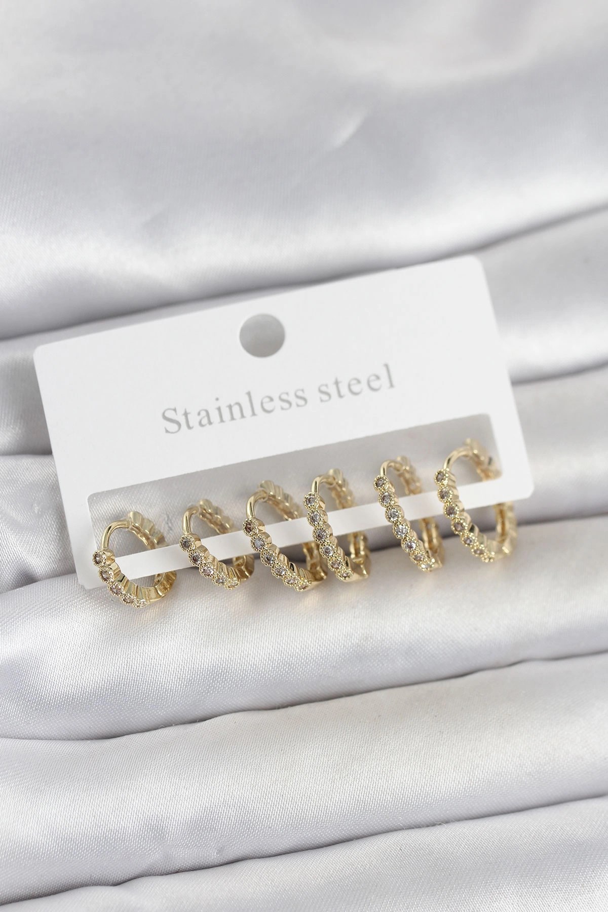 Mey İthalat® Pirinç Gold Renk İşlemeli Yarım Halka Model Kadın Küpe