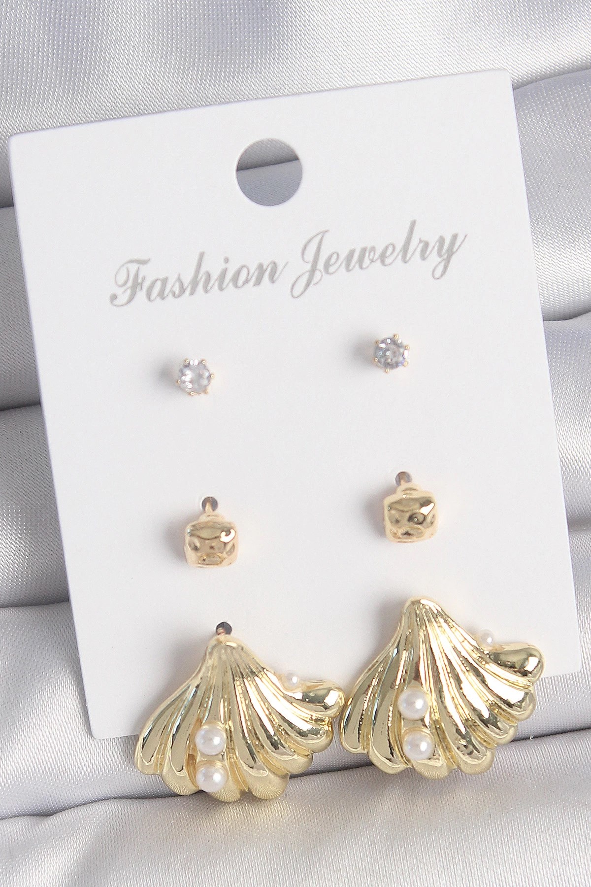 Mey İthalat® Pirinç Gold Renk Kalp Model Sallantı İnci Detay Kadın Küpe