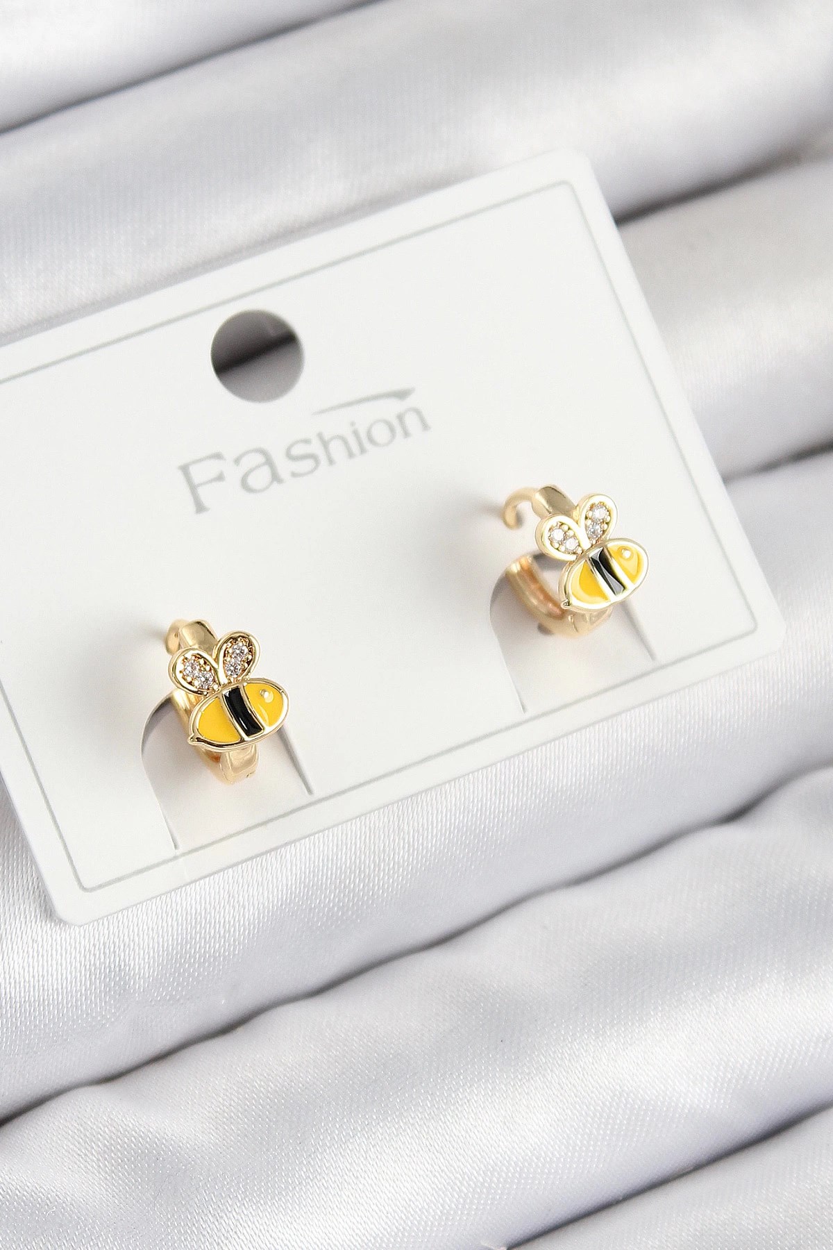 Mey İthalat® Pirinç Gold Renk Kare Zirkon Taşlı Kadın Küpe