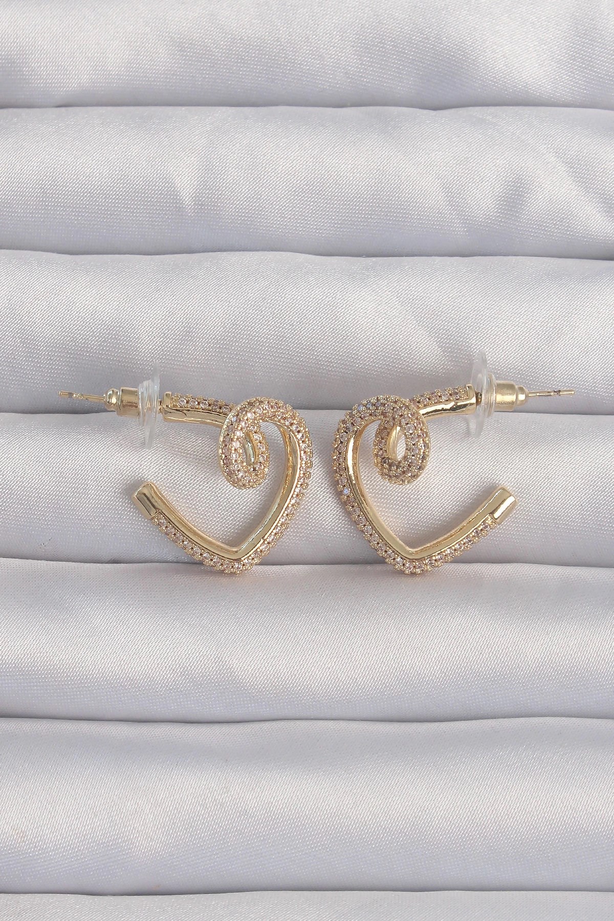 Mey İthalat® Pirinç Gold Renk Kıvrımlı Damla Görünüm Sallantılı Küpe