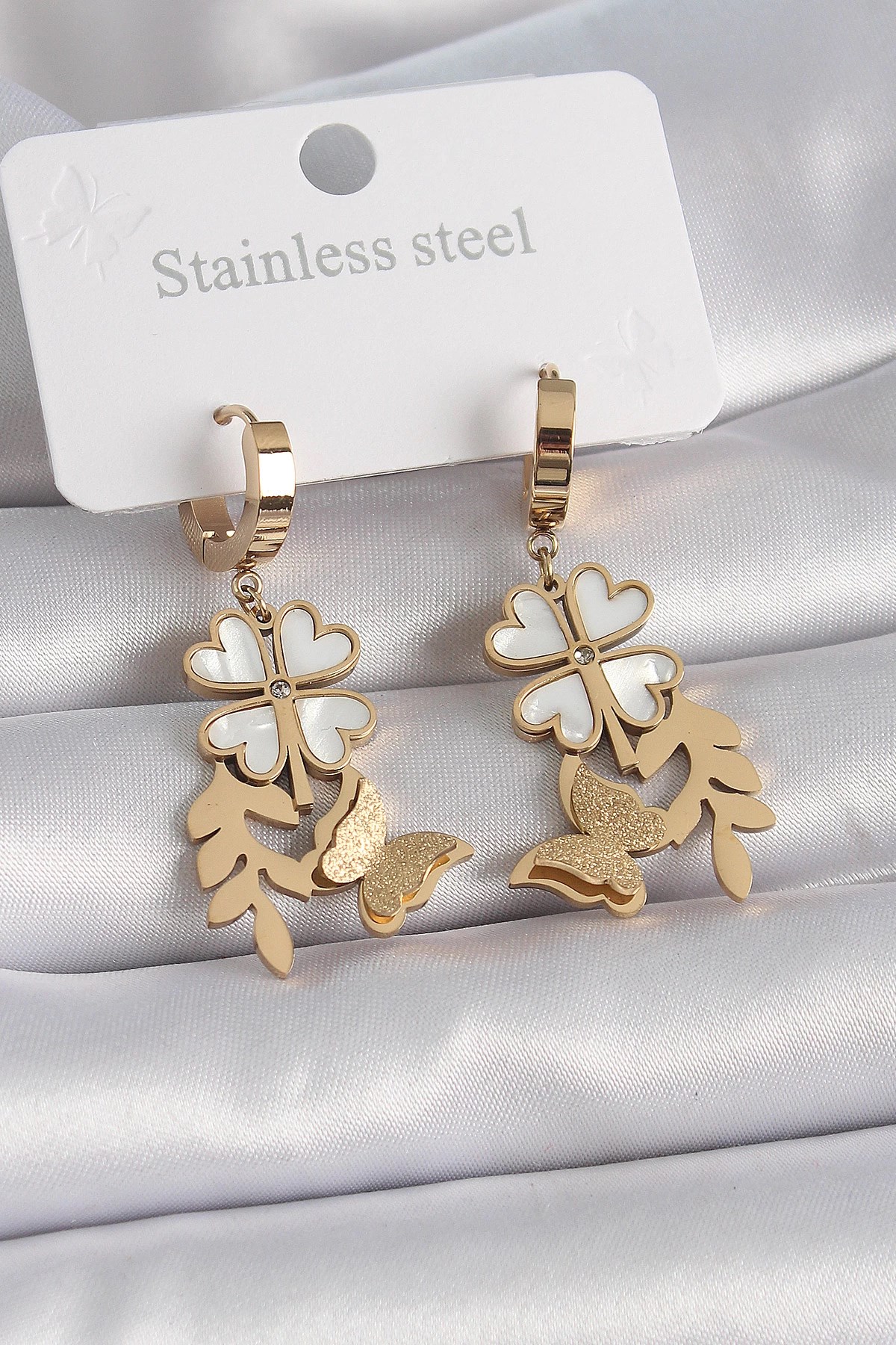 Mey İthalat® Pirinç Gold Renk Sallantı Leopar Kalp Model Kadın Küpe