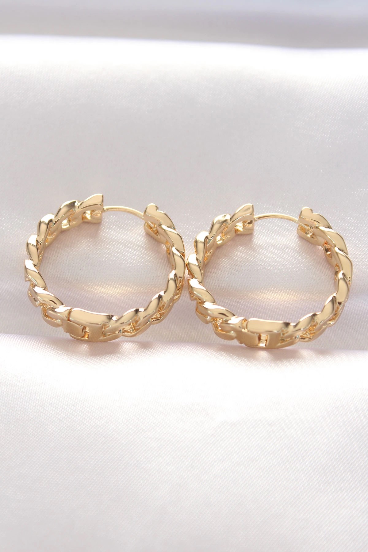 Mey İthalat® Pirinç Gold Renk Zincir Model Halka Küpe