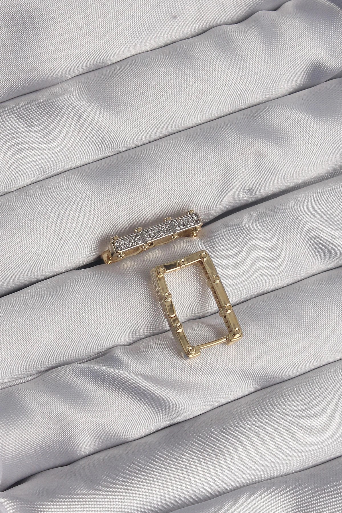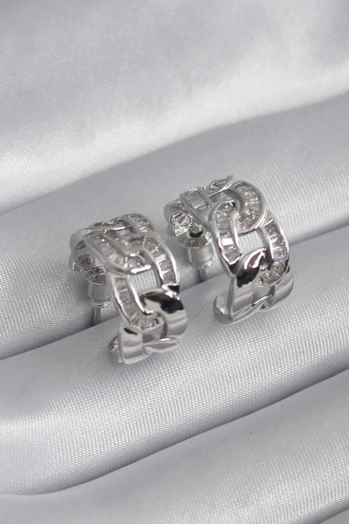 Mey İthalat® Pirinç Gold Renk Zirkon Taşlı Dikdörtgen Model Seranay Küpe