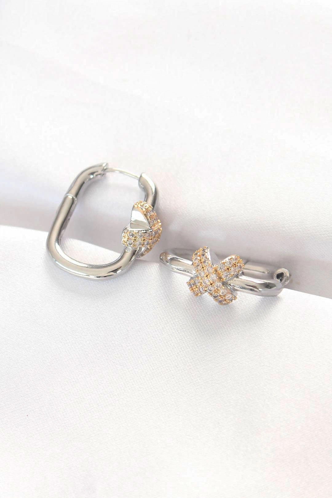 Mey İthalat® Pirinç Gold Renk Zirkon Taşlı Halka Model Kadın Küpe