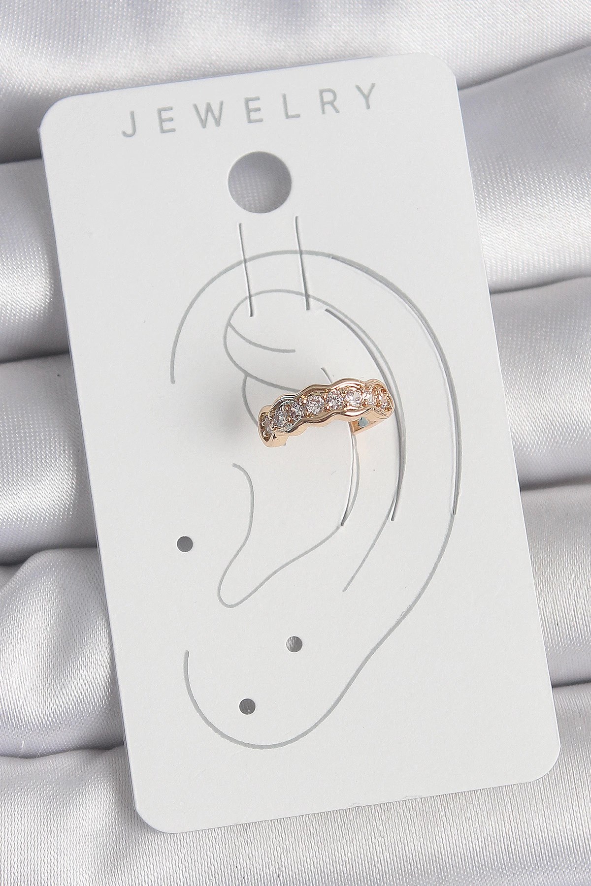 Mey İthalat® Pirinç Gold Renk Zirkon Taşlı Kadın Kıkırdak Küpe