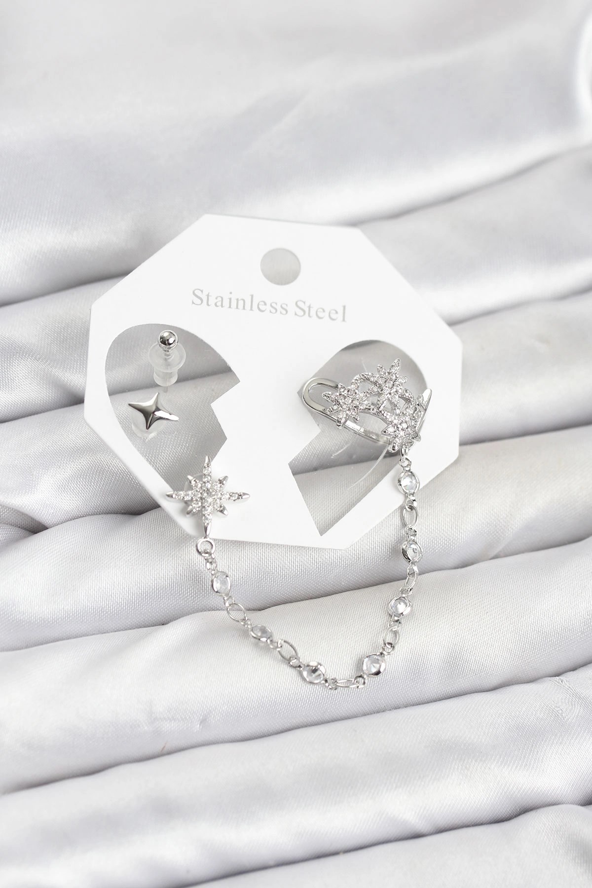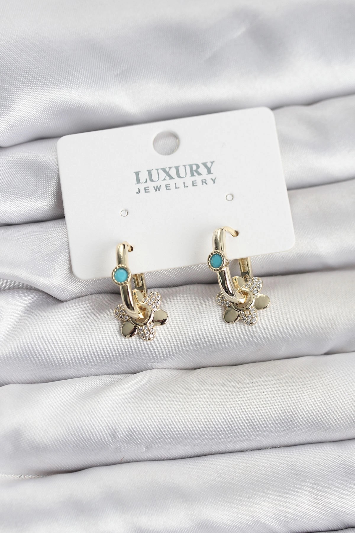 Mey İthalat® Pirinç Gold Renk Zirkon Taşlı Kadın Küpe