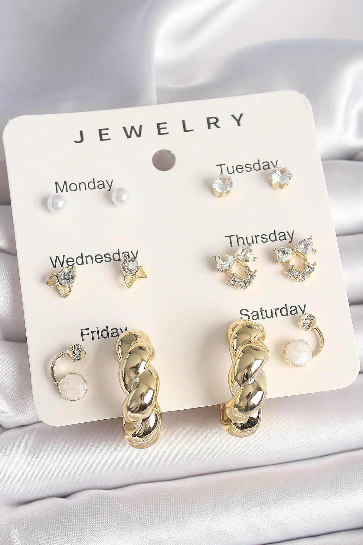 Mey İthalat® Pirinç Gold Renk Zirkon Taşlı Oval Model Küpe