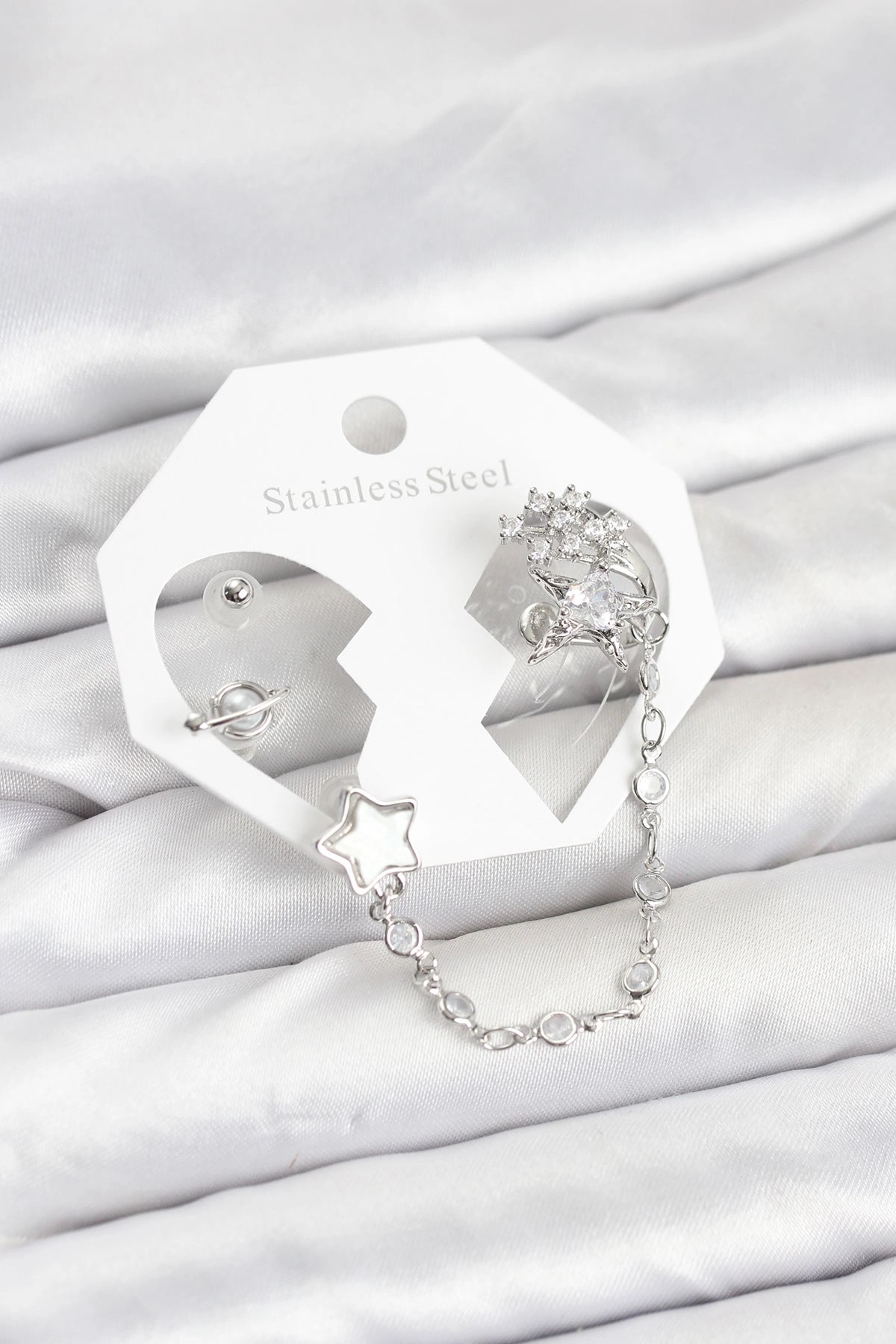 Küpe setlerimiz pirinç materyalden üretilmiştir.-Set içerisinde üç farklı model küpe yer almaktadır ve birlikte ya da ayrı ayrı kullanılabilir.-Dikkatli ve özenli kullanımda kararma ve renk değişimi yapmaz.-Ürünün uzun süre ilk günkü görünümünü koruyabilmesi için su, parfüm ve kimyasal maddelerle temasından kaçınılması önerilir.-Cilt yapısına bağlı olarak bijuteri ve kaplama ürünlere verilen tepkiler farklılık gösterebilir; bazı ciltlerde kararma görülebileceği unutulmamalıdır.Sağlıkla ve keyifle kullanmanız dileğiyle.