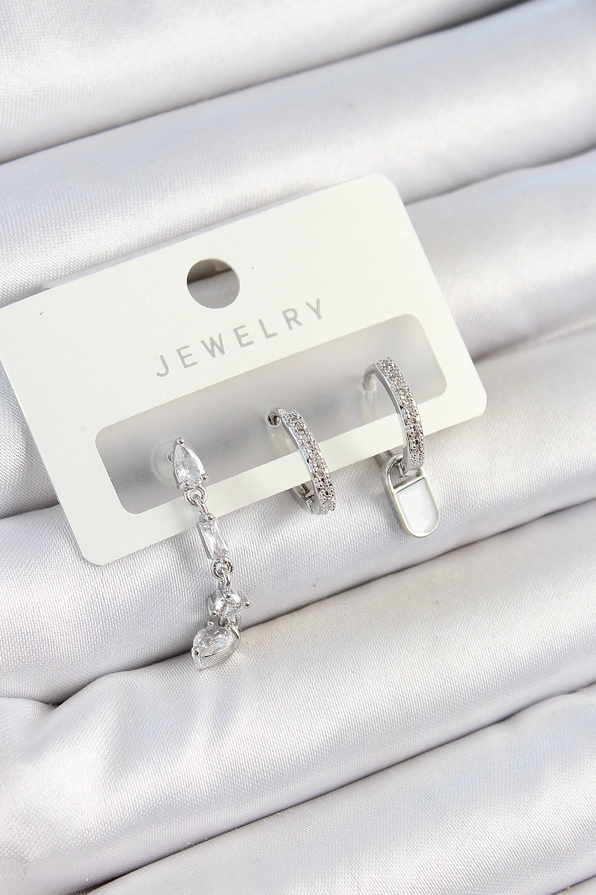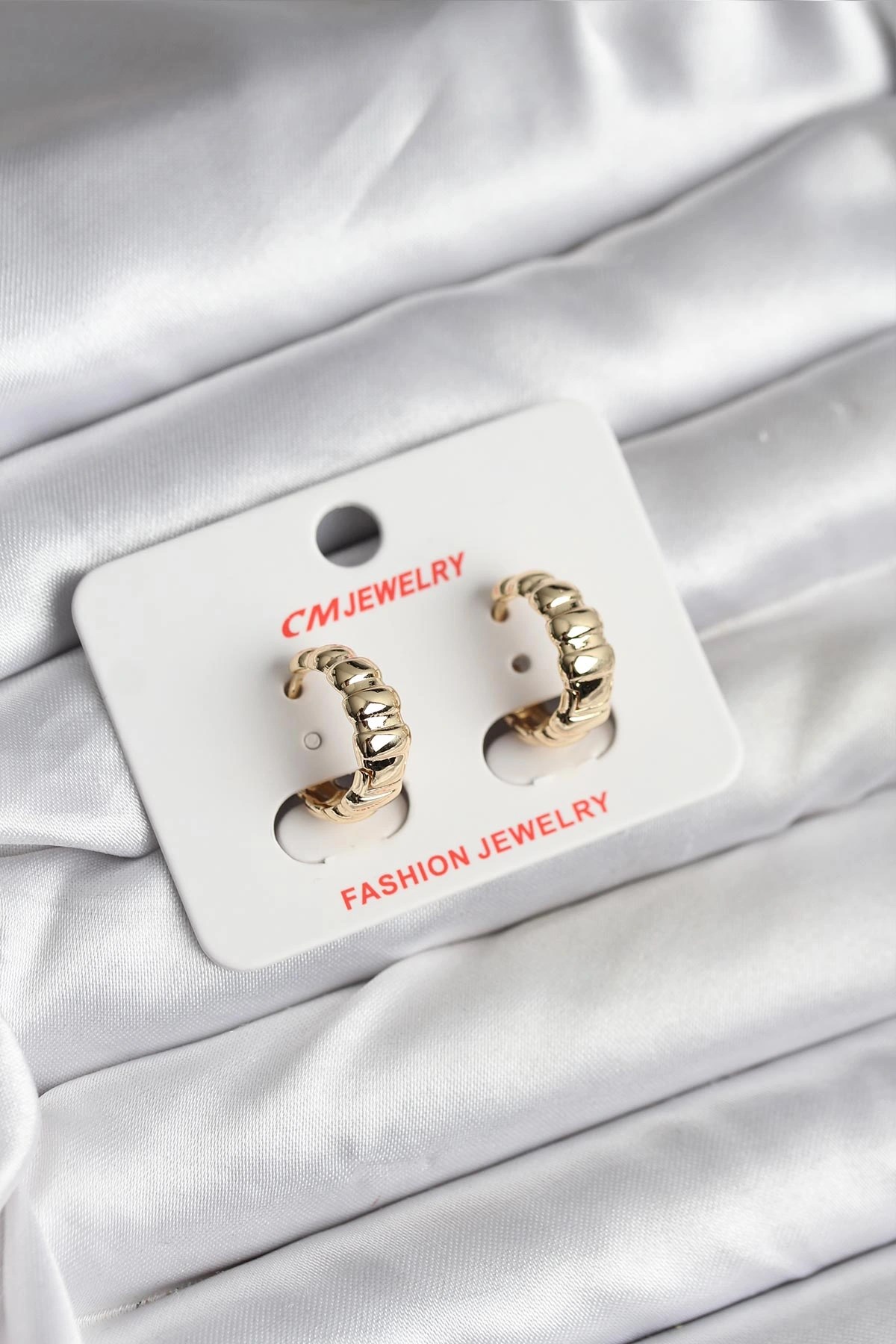 Mey İthalat® Pirinç Gold Renk Zirkon Taşlı Sarmal Halka Model 7'Li Kadın Küpe Seti