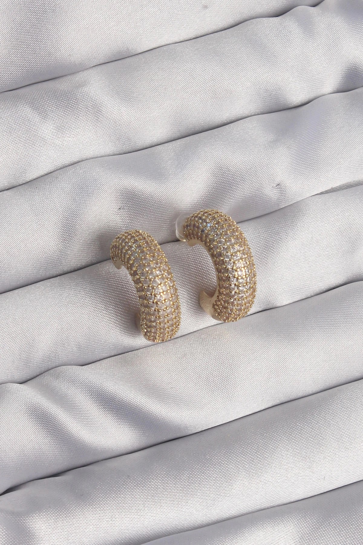 Mey İthalat® Pirinç Gold Renk Zirkon Taşlı Yarım Halka Küpe