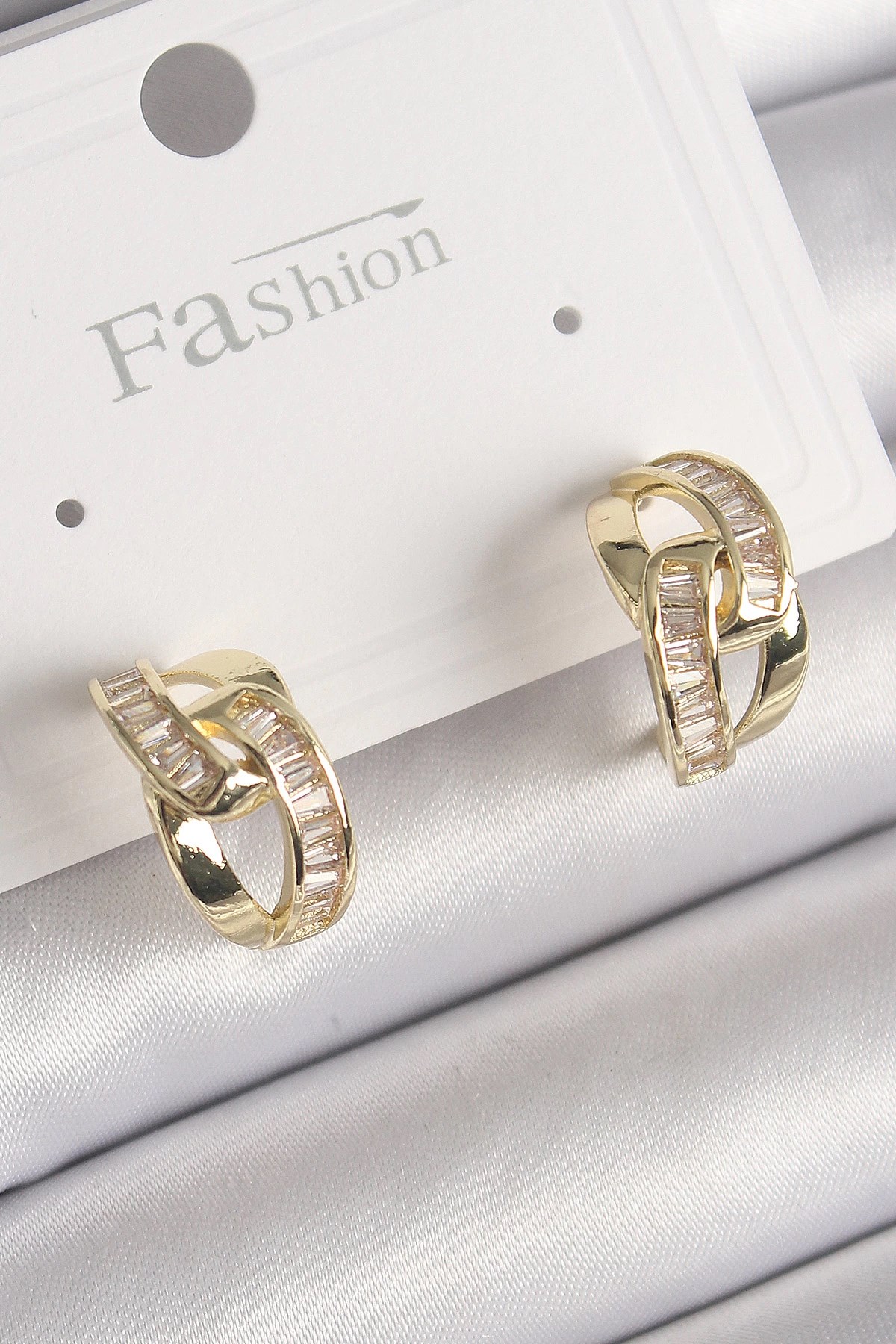 Mey İthalat® Pirinç Gold Renk Zirkon Taşlı Zincir Model Kadın Küpe